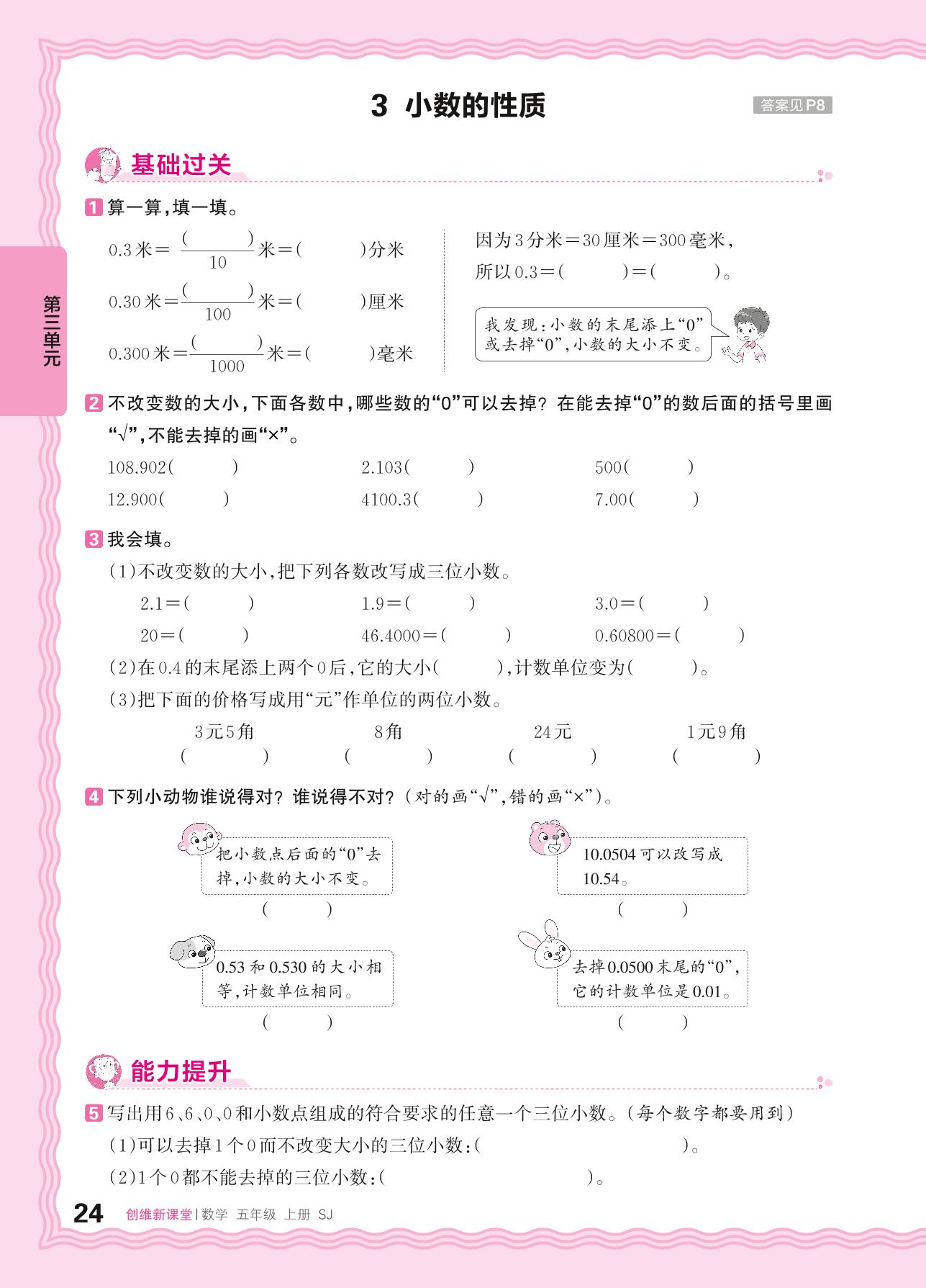 2024秋上册五年级数学苏教版 第三单元 小数的意义和性质——3. 小数的性质