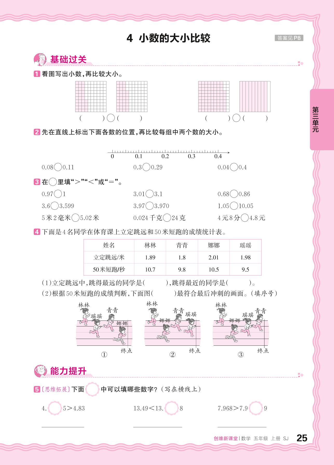 2024秋上册五年级数学苏教版 第三单元 小数的意义和性质——4. 小数的大小比较
