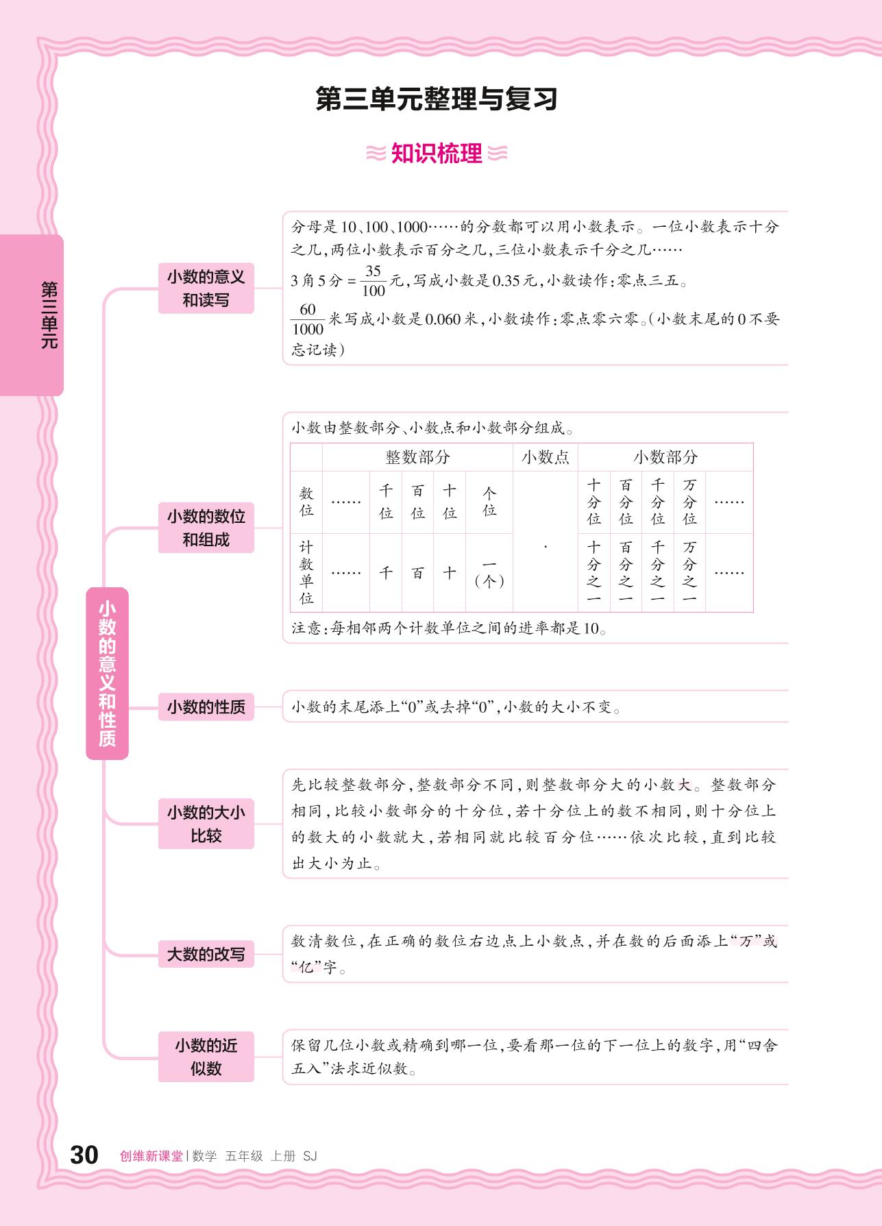 2024秋上册五年级数学苏教版 第三单元整理与复习