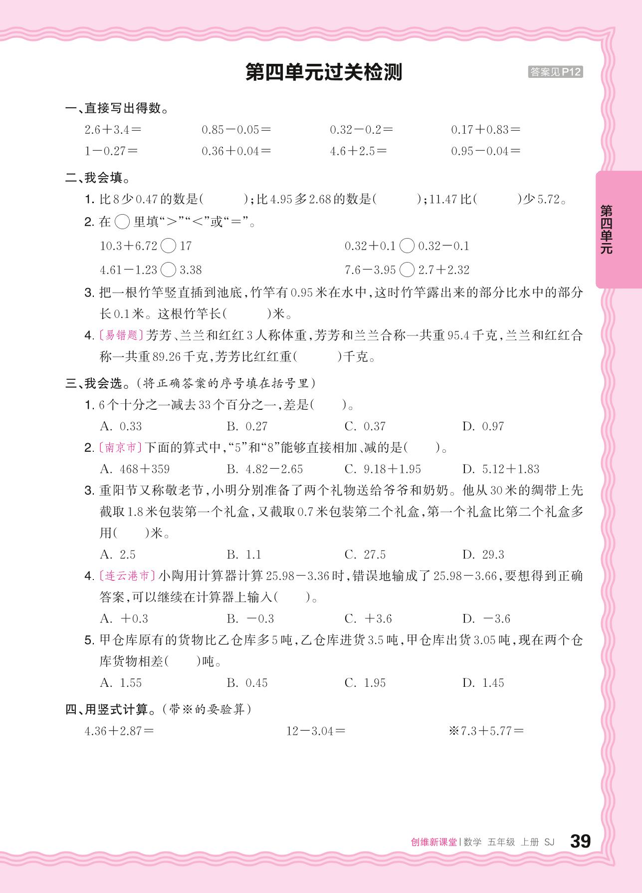五年级数学苏教版上册单元卷