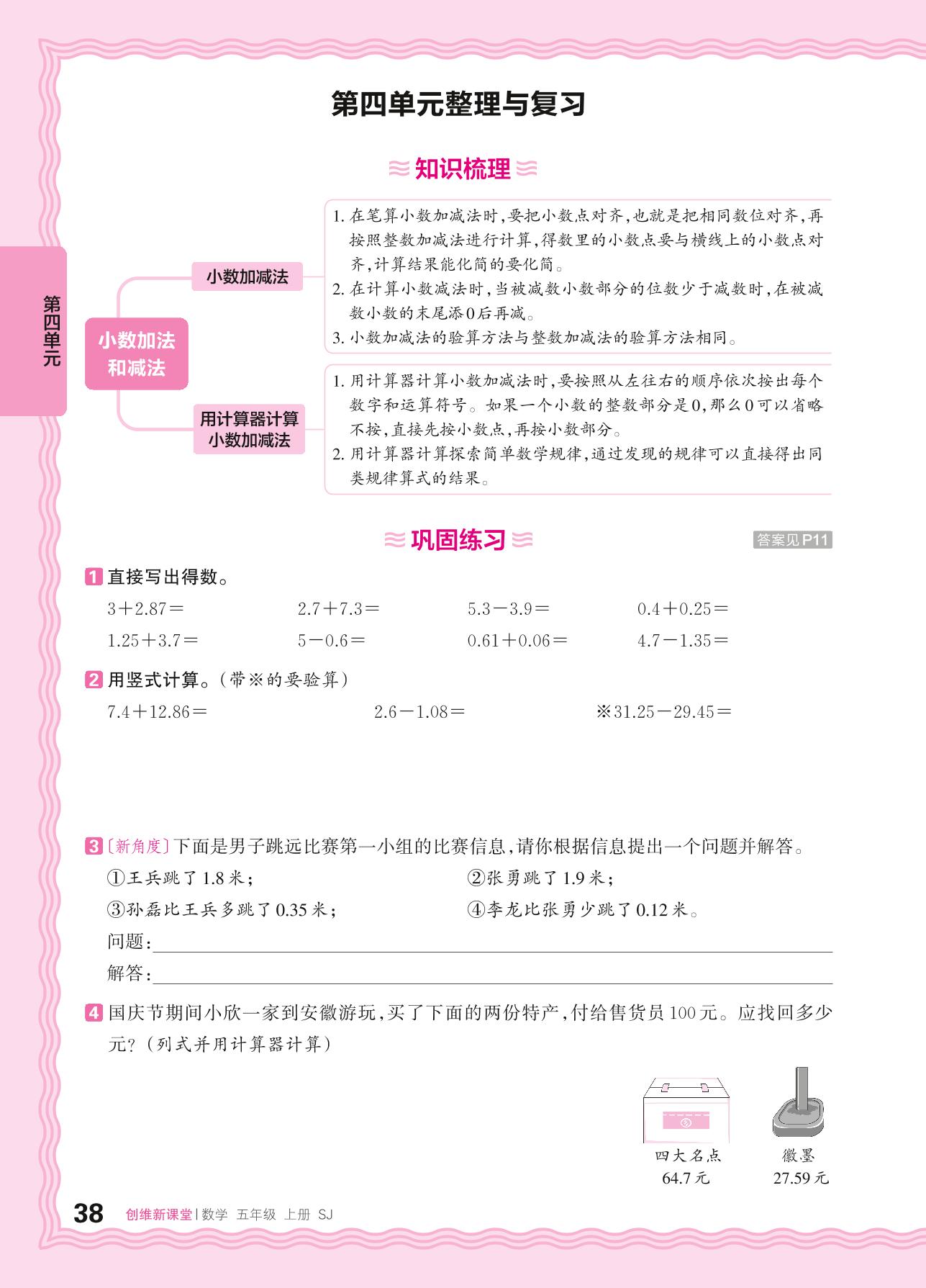 2024秋上册五年级数学苏教版 第四单元整理与复习