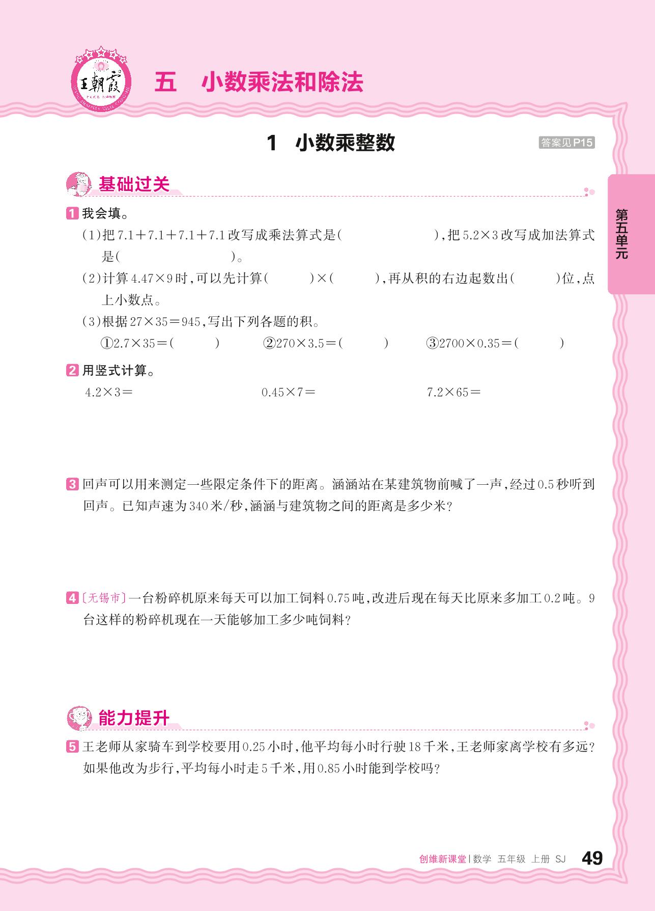 2024秋上册五年级数学苏教版 第五单元 小数乘法和除法——1. 小数乘整数