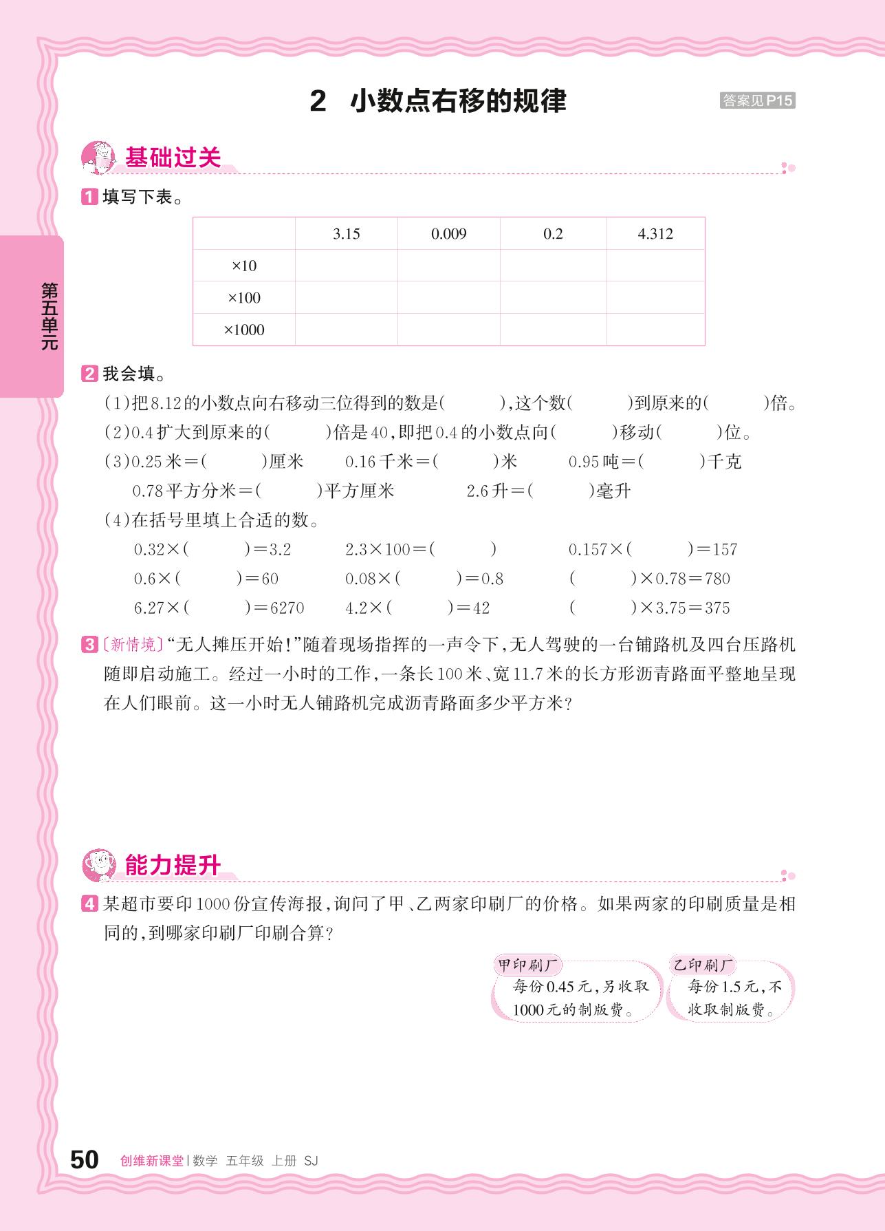 2024秋上册五年级数学苏教版 第五单元 小数乘法和除法——2. 小数点右移的规律
