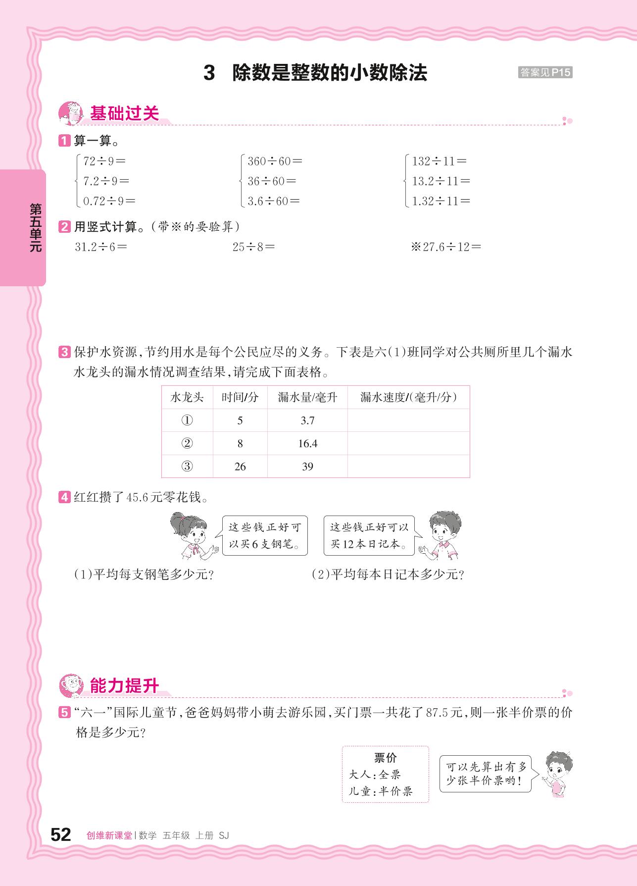 2024秋上册五年级数学苏教版 第五单元 小数乘法和除法——3. 除数是整数的小数除法