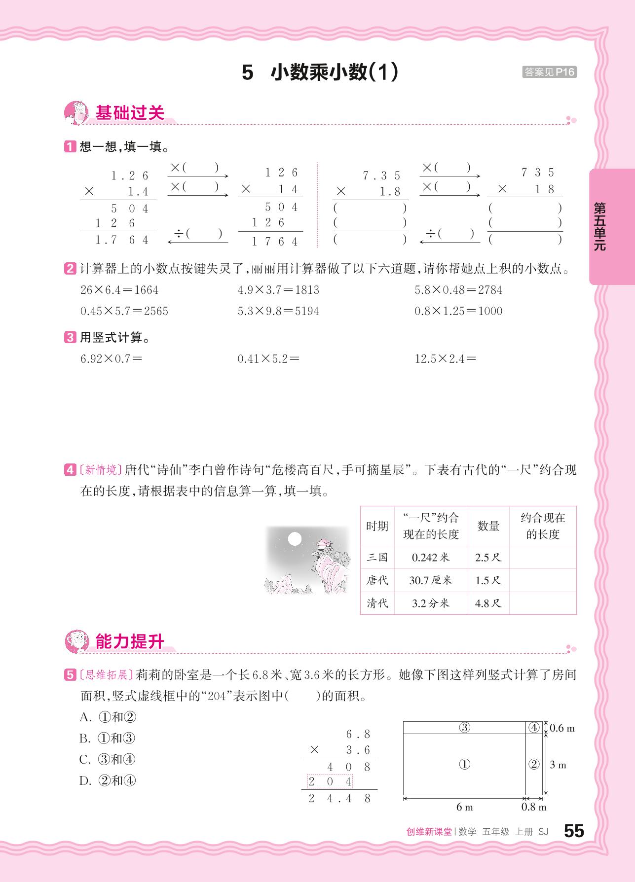 2024秋上册五年级数学苏教版 第五单元 小数乘法和除法——5. 小数乘小数(1)