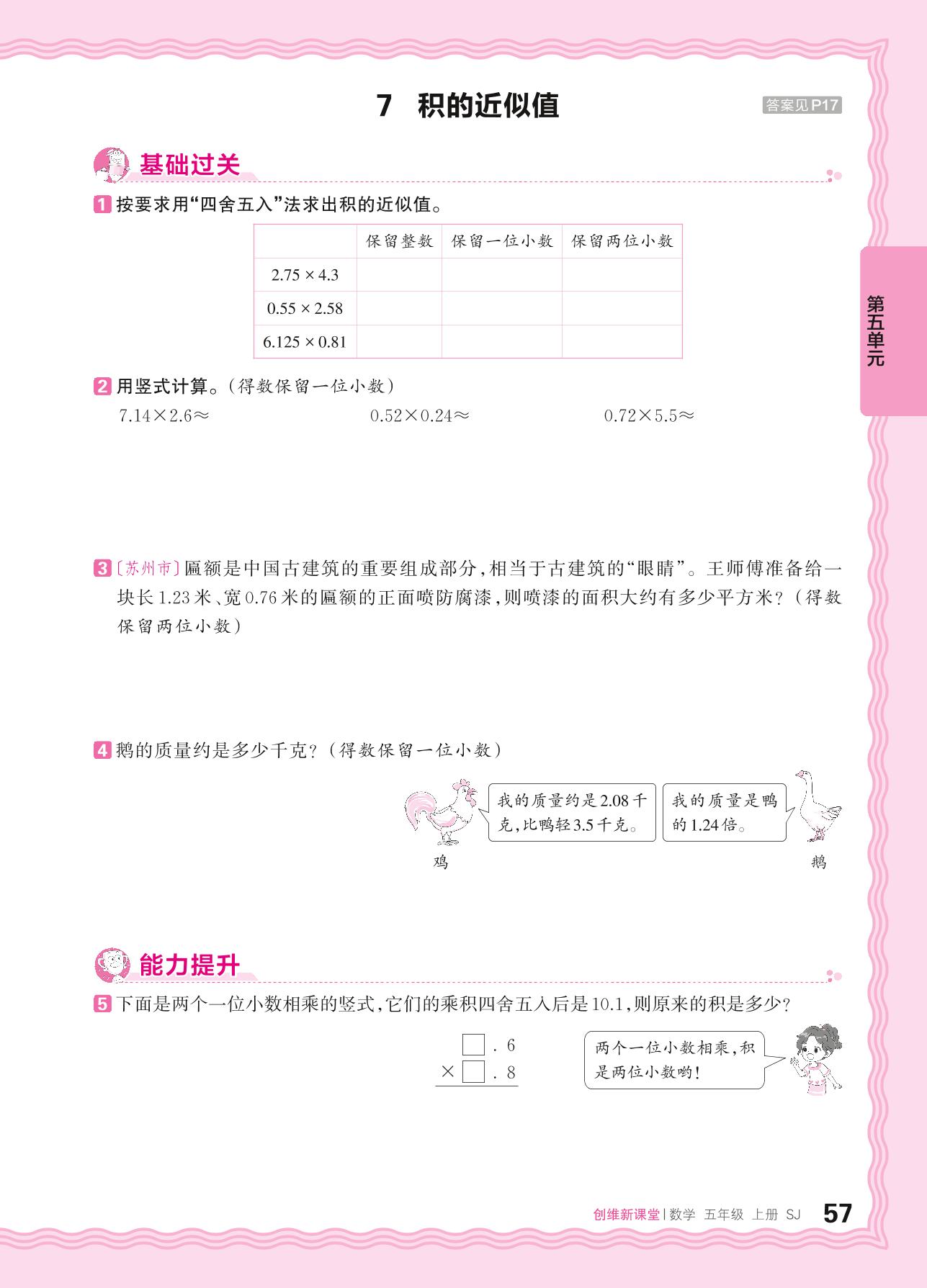 2024秋上册五年级数学苏教版 第五单元 小数乘法和除法——7. 积的近似值