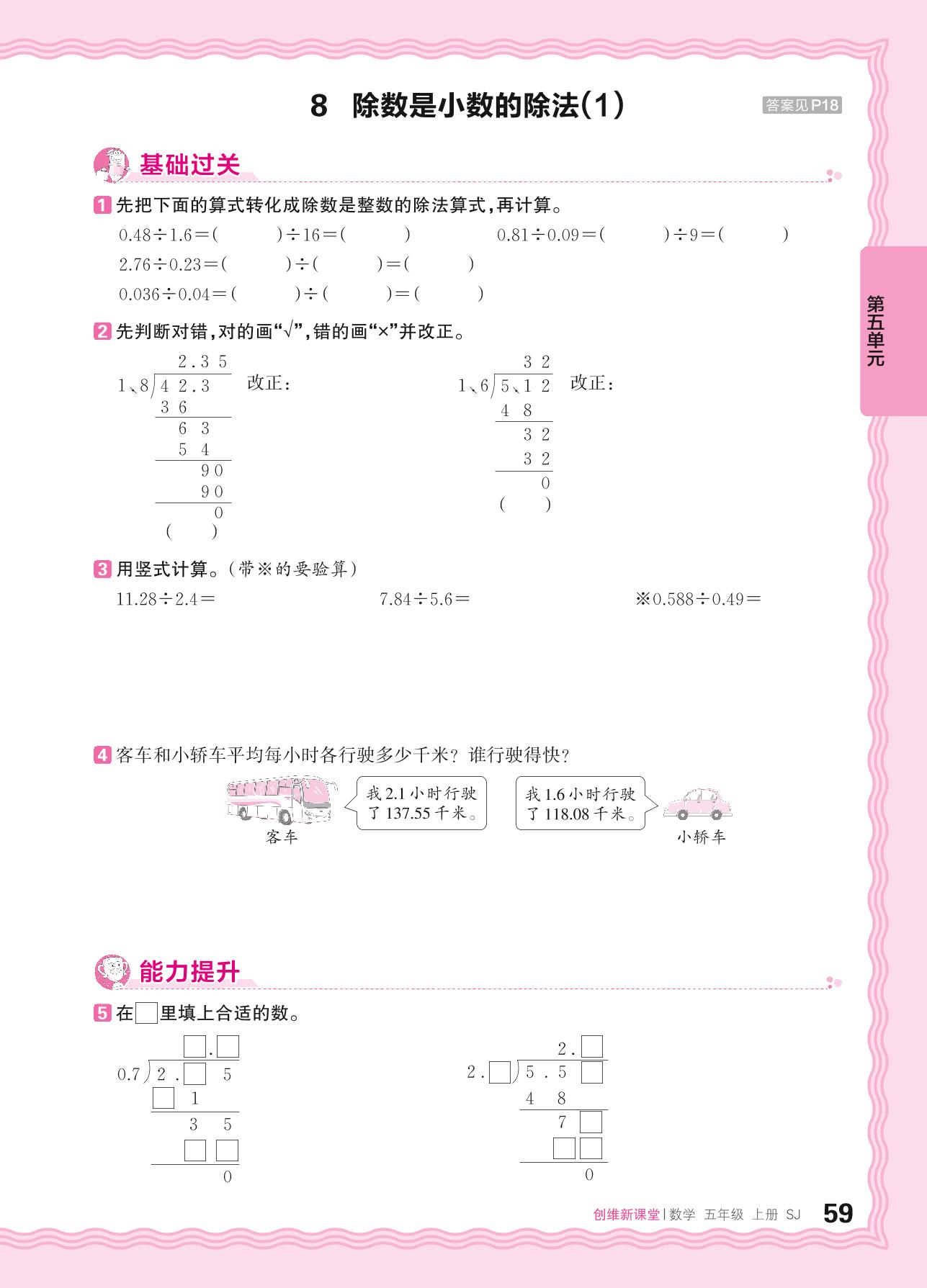 2024秋上册五年级数学苏教版 第五单元 小数乘法和除法——8. 除数是小数的除法(1)