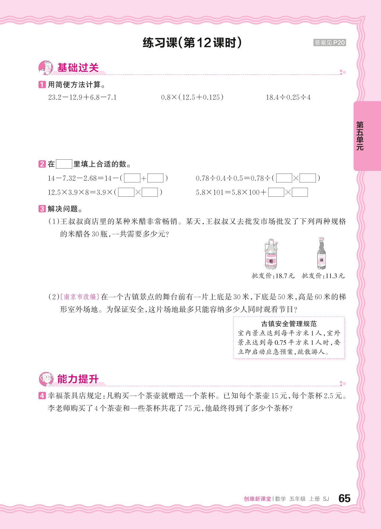 2024秋上册五年级数学苏教版 第五单元 小数乘法和除法——小数四则混合运算练习课