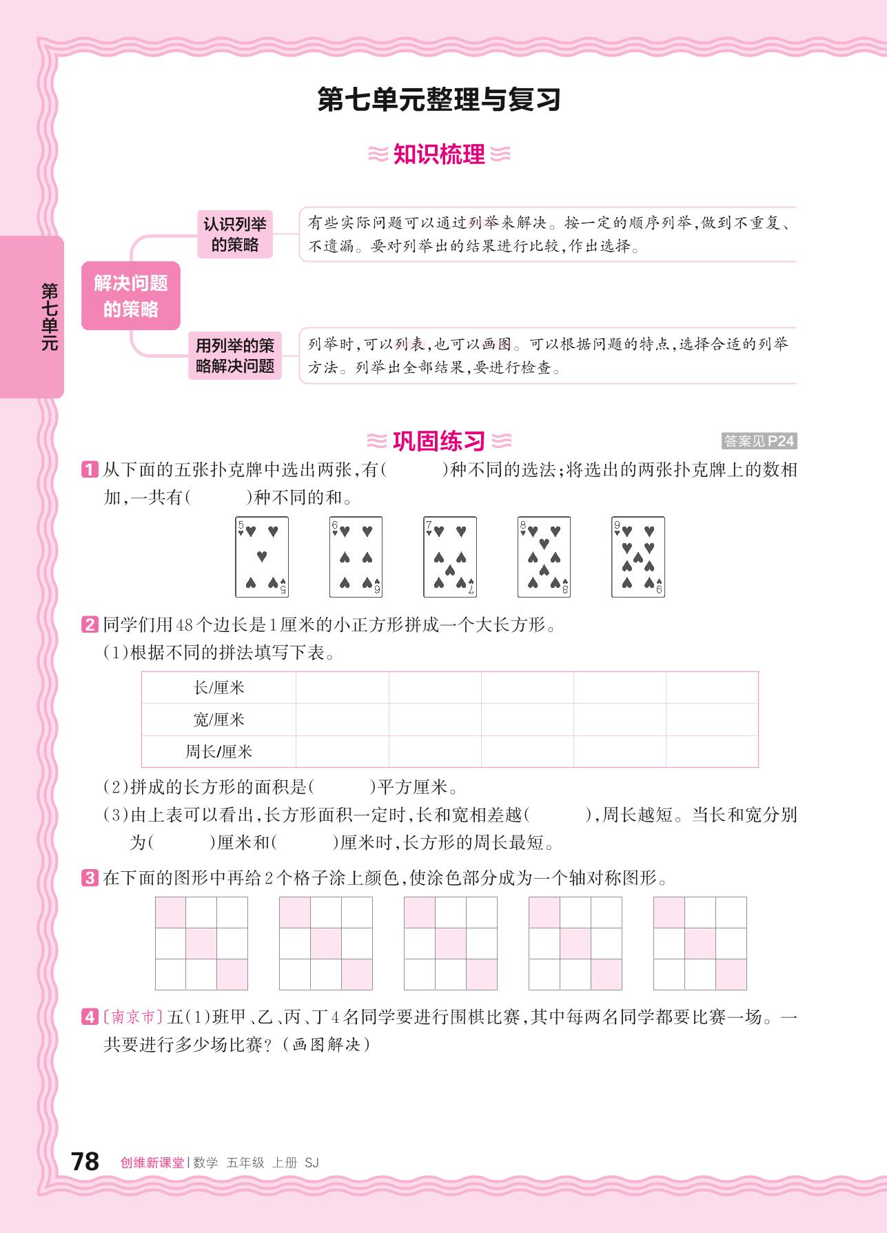 2024秋上册五年级数学苏教版 第七单元整理与复习