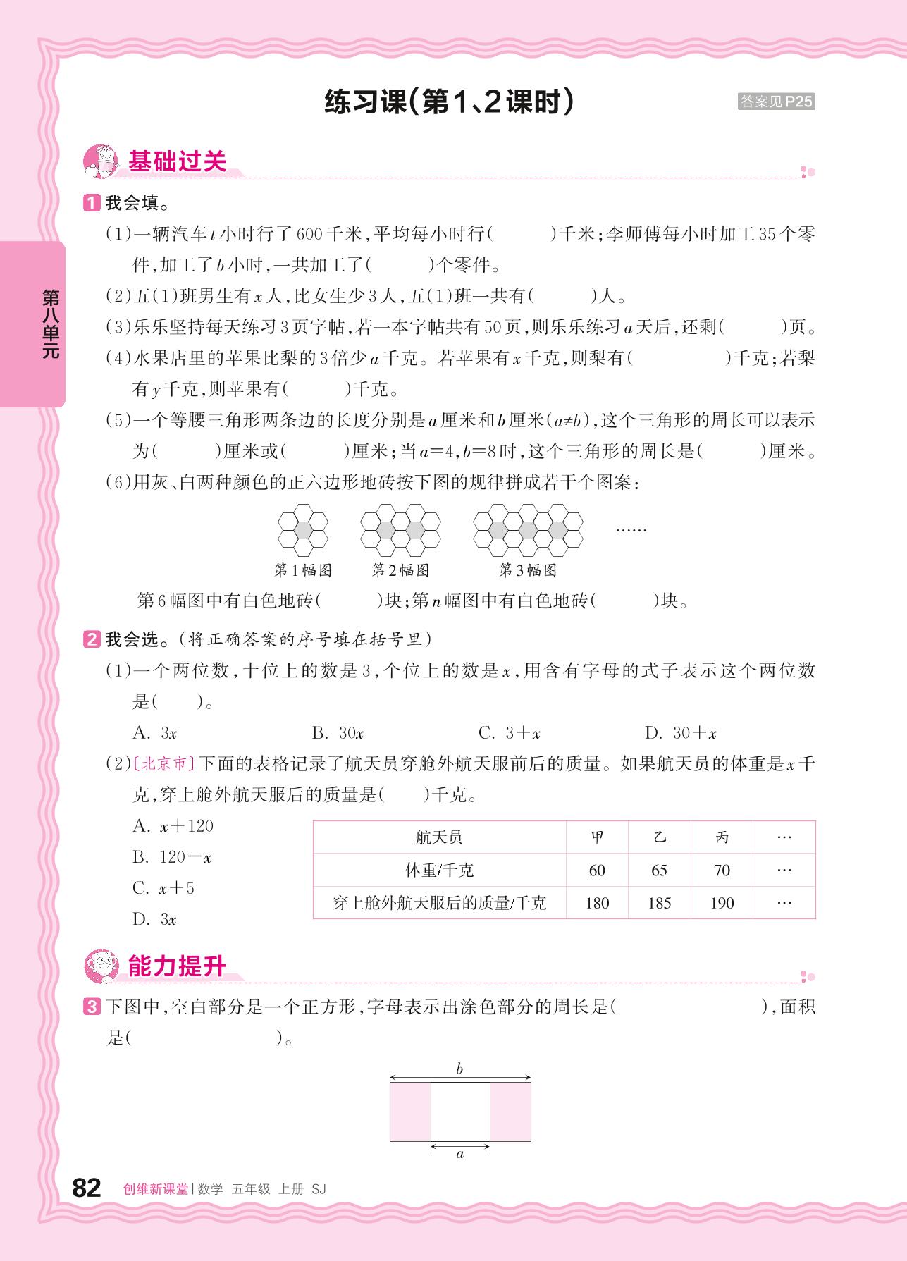 2024秋上册五年级数学苏教版 第八单元 用字母表示数——用字母表示数练习课