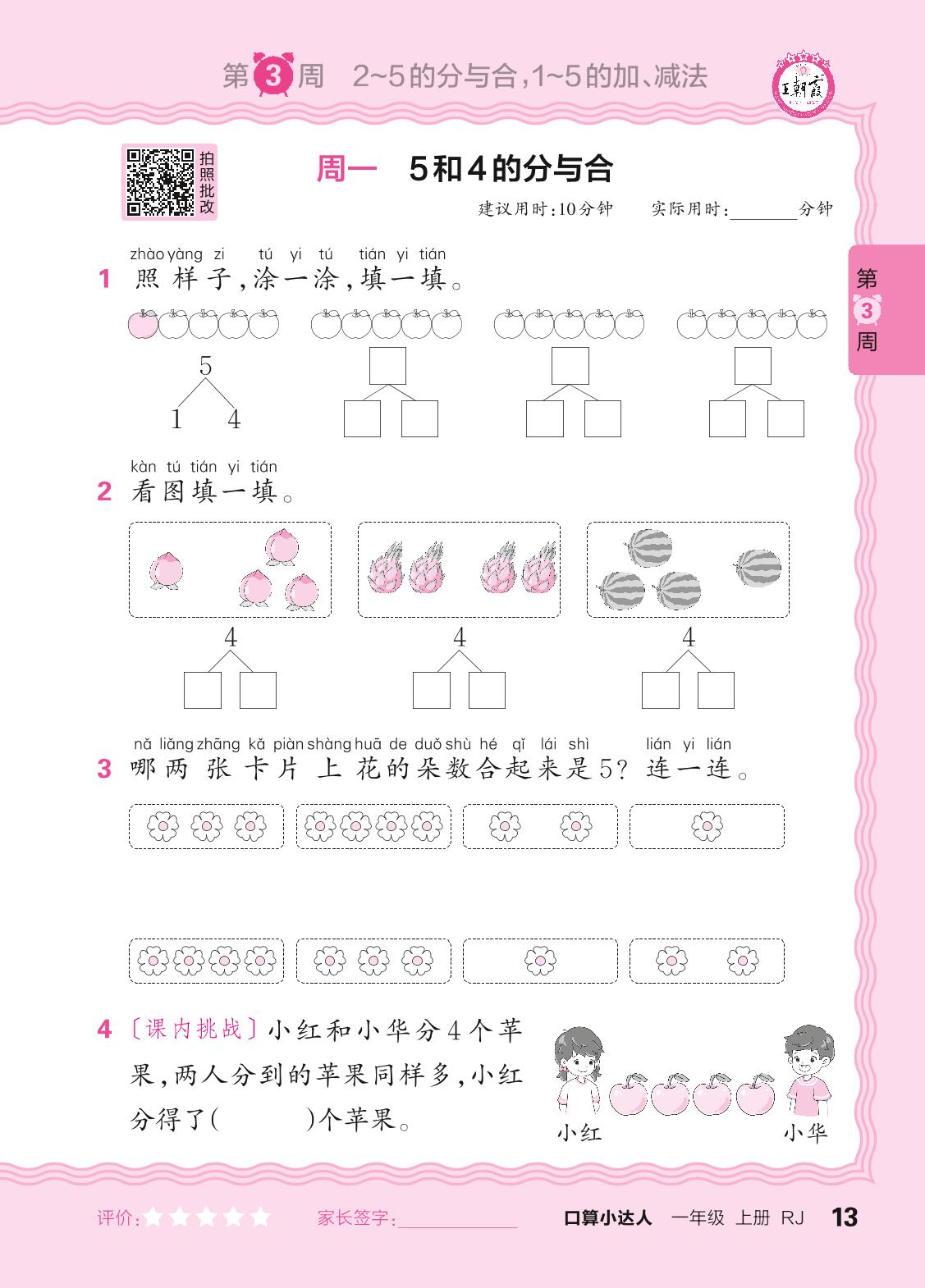 2024秋上册一年级数学人教版 口算计算专练 第3周