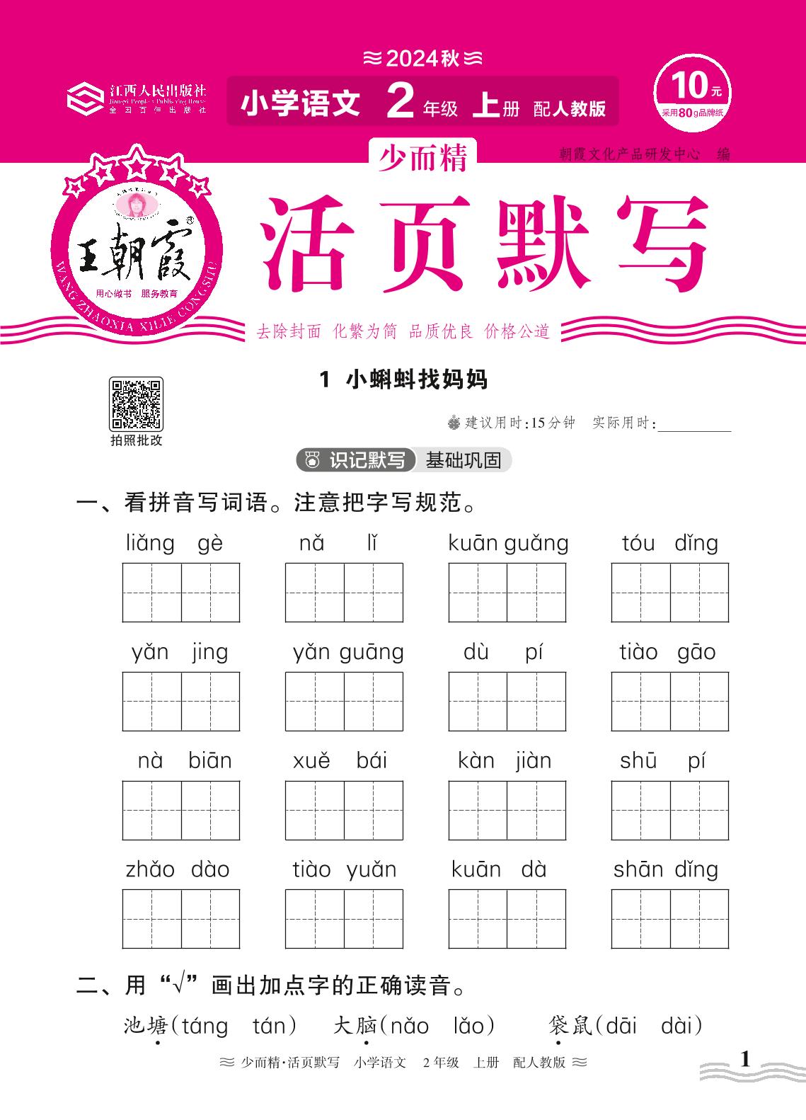 2024秋上册二年级语文人教版 第一单元——1. 小蝌蚪找妈妈