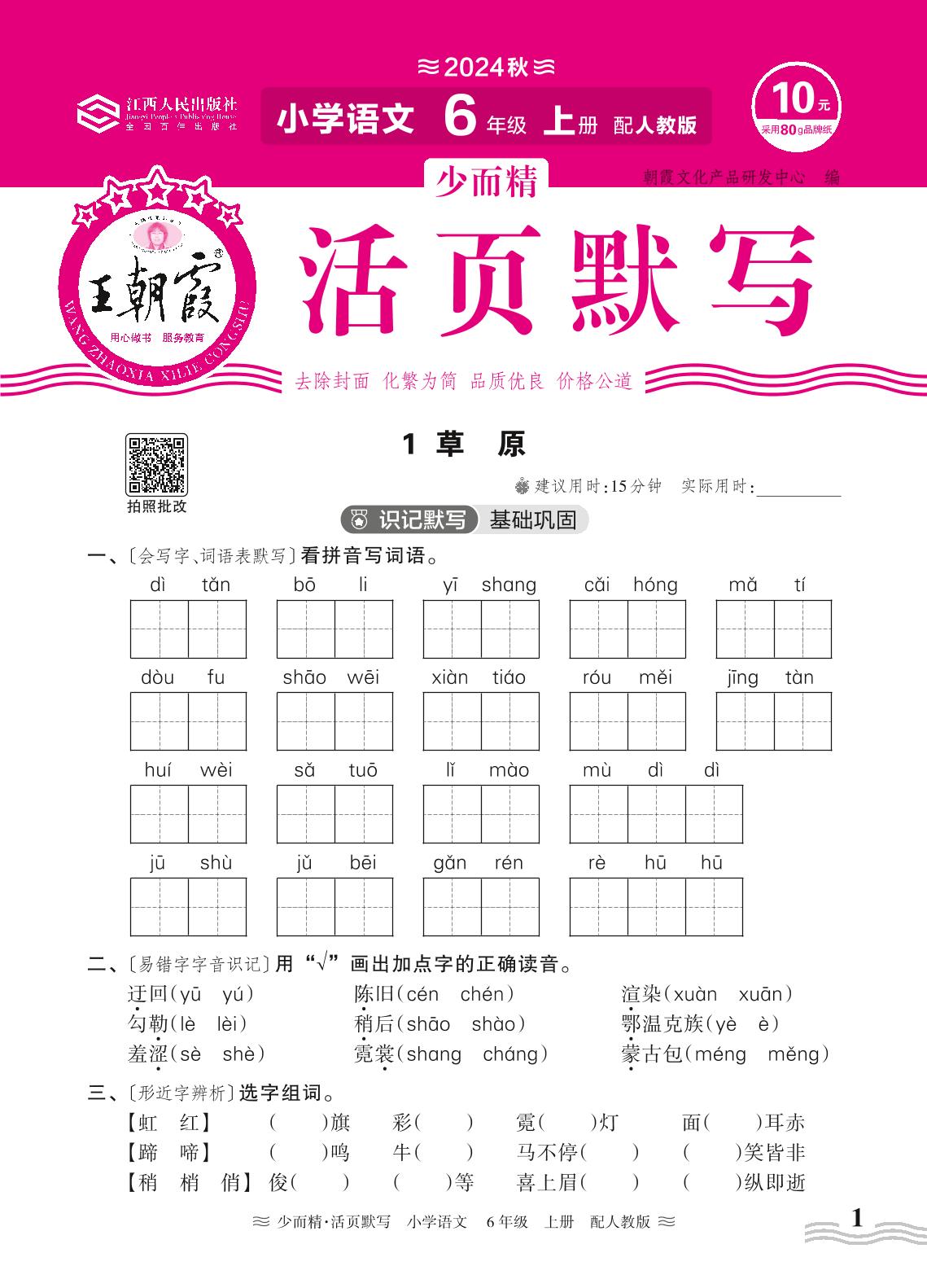 2024秋上册六年级语文人教版 第一单元——1. 草原