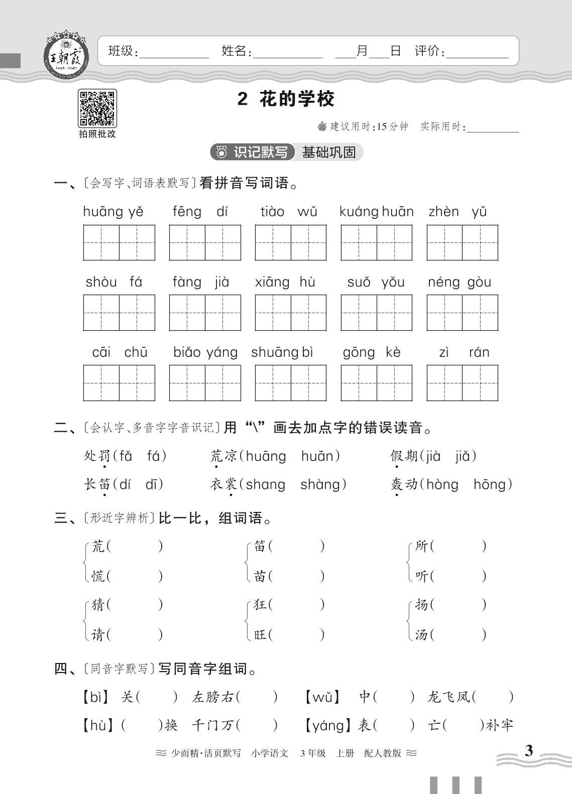2024秋上册三年级语文人教版 第一单元——2. 花的学校