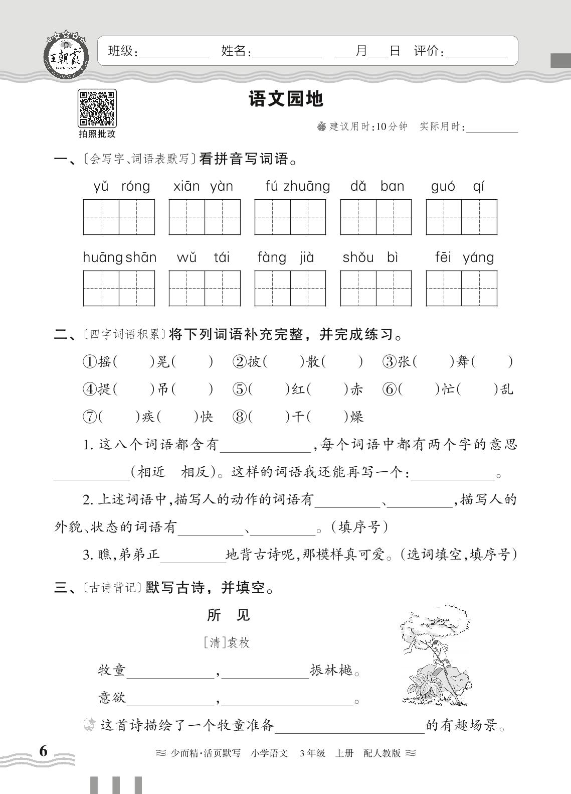 2024秋上册三年级语文人教版 第一单元——语文园地