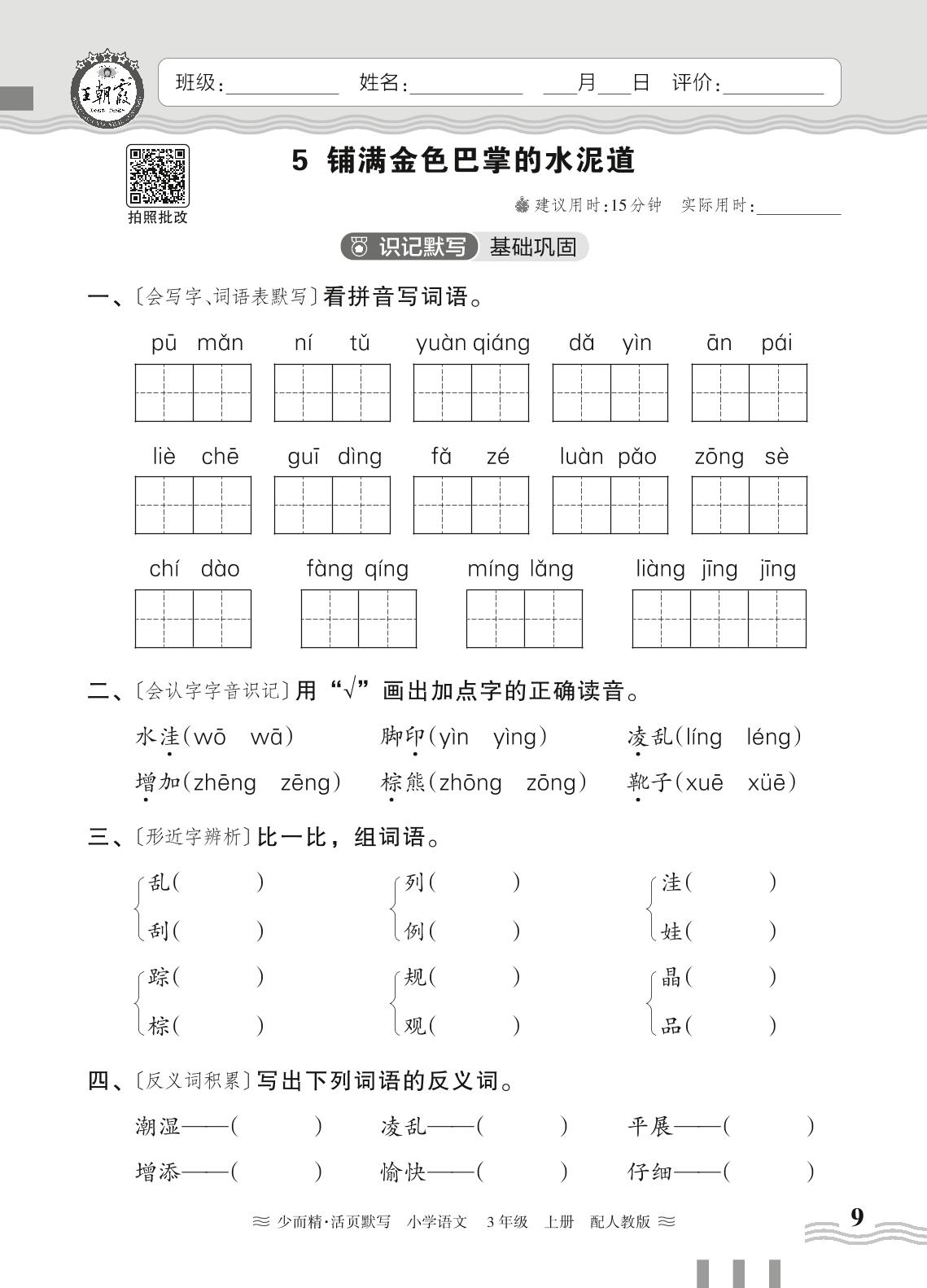 2024秋上册三年级语文人教版 第二单元——5. 铺满金色巴掌的水泥道