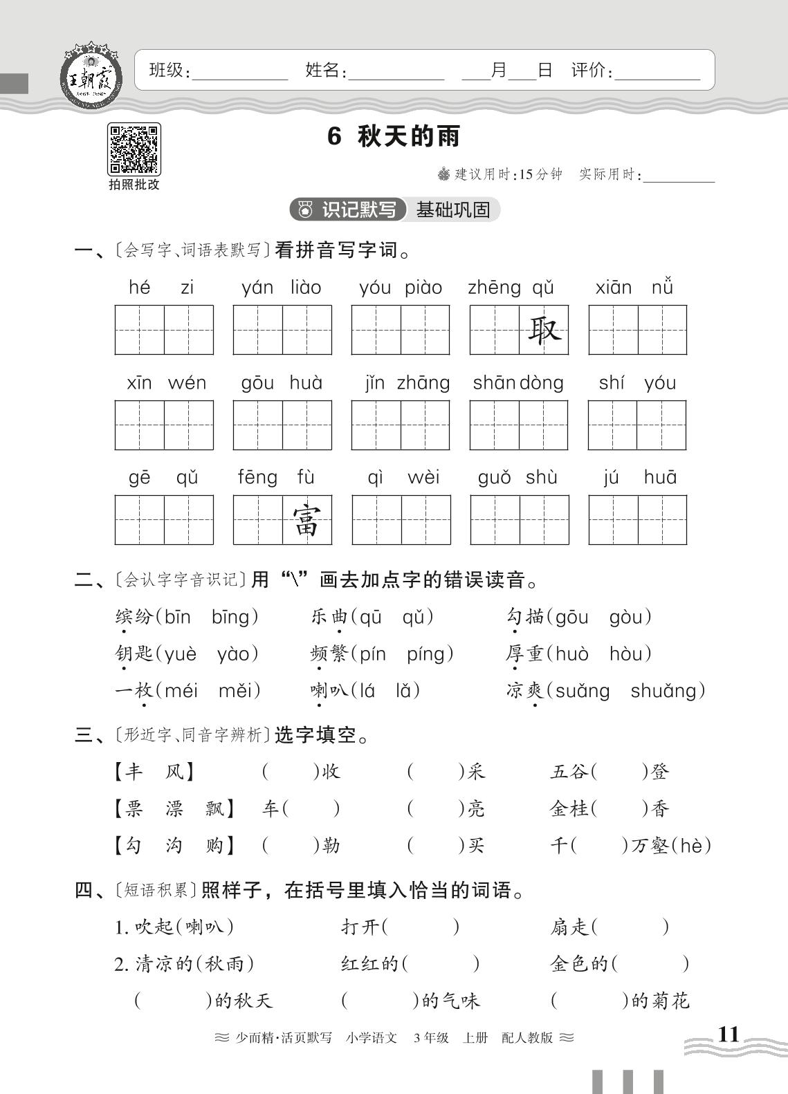 2024秋上册三年级语文人教版 第二单元——6. 秋天的雨