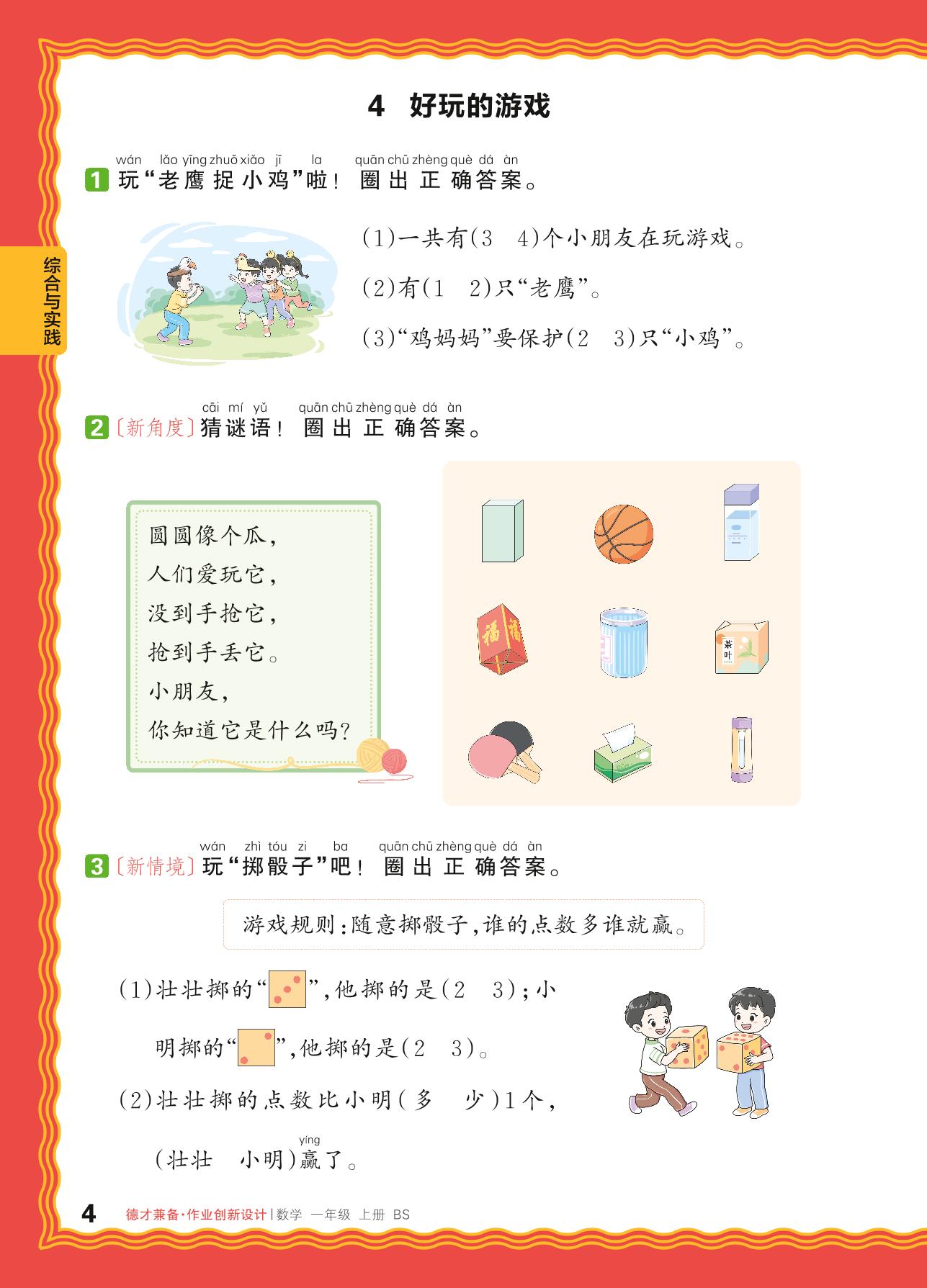 2024秋上册一年级数学北师版 我上学啦——4. 好玩的游戏_R240819135715616