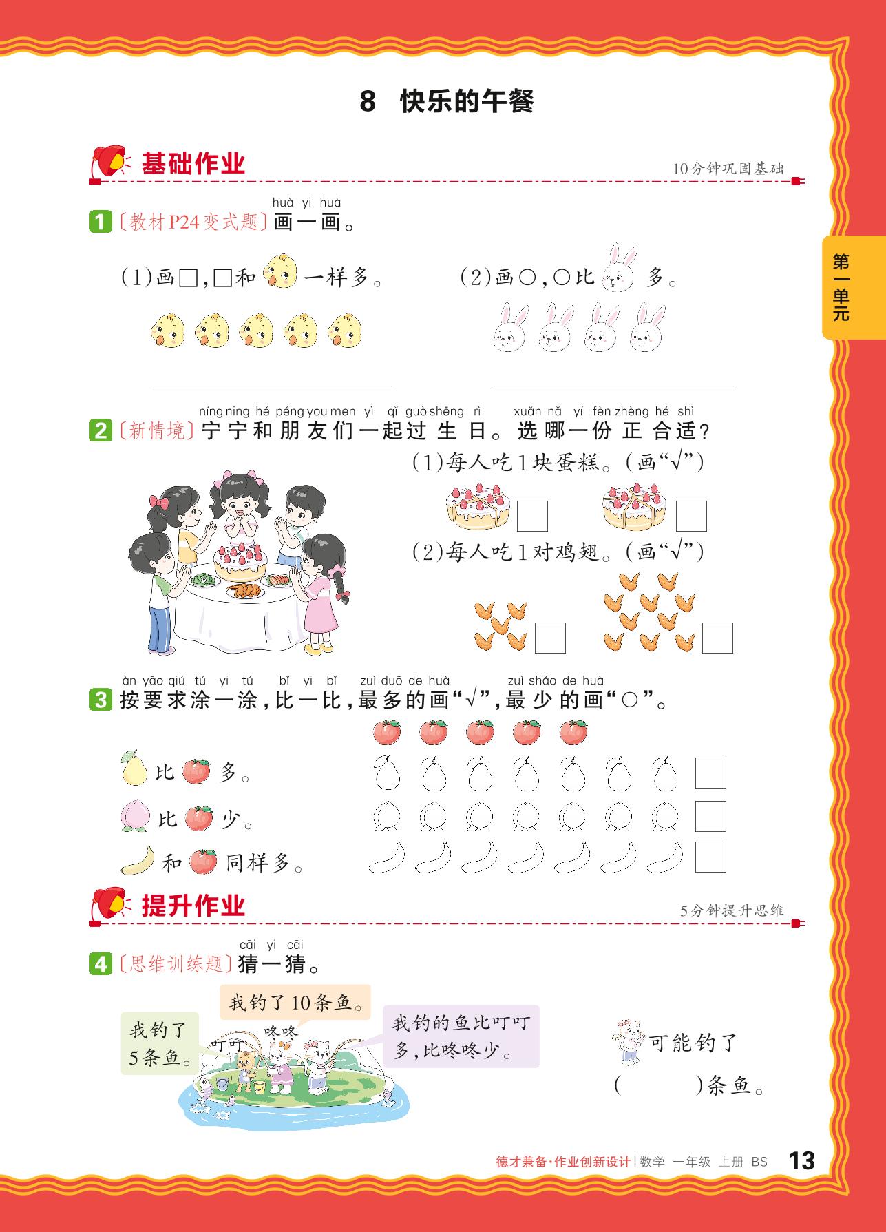 2024秋上册一年级数学北师版 第一单元 生活中的数——8. 快乐的午餐