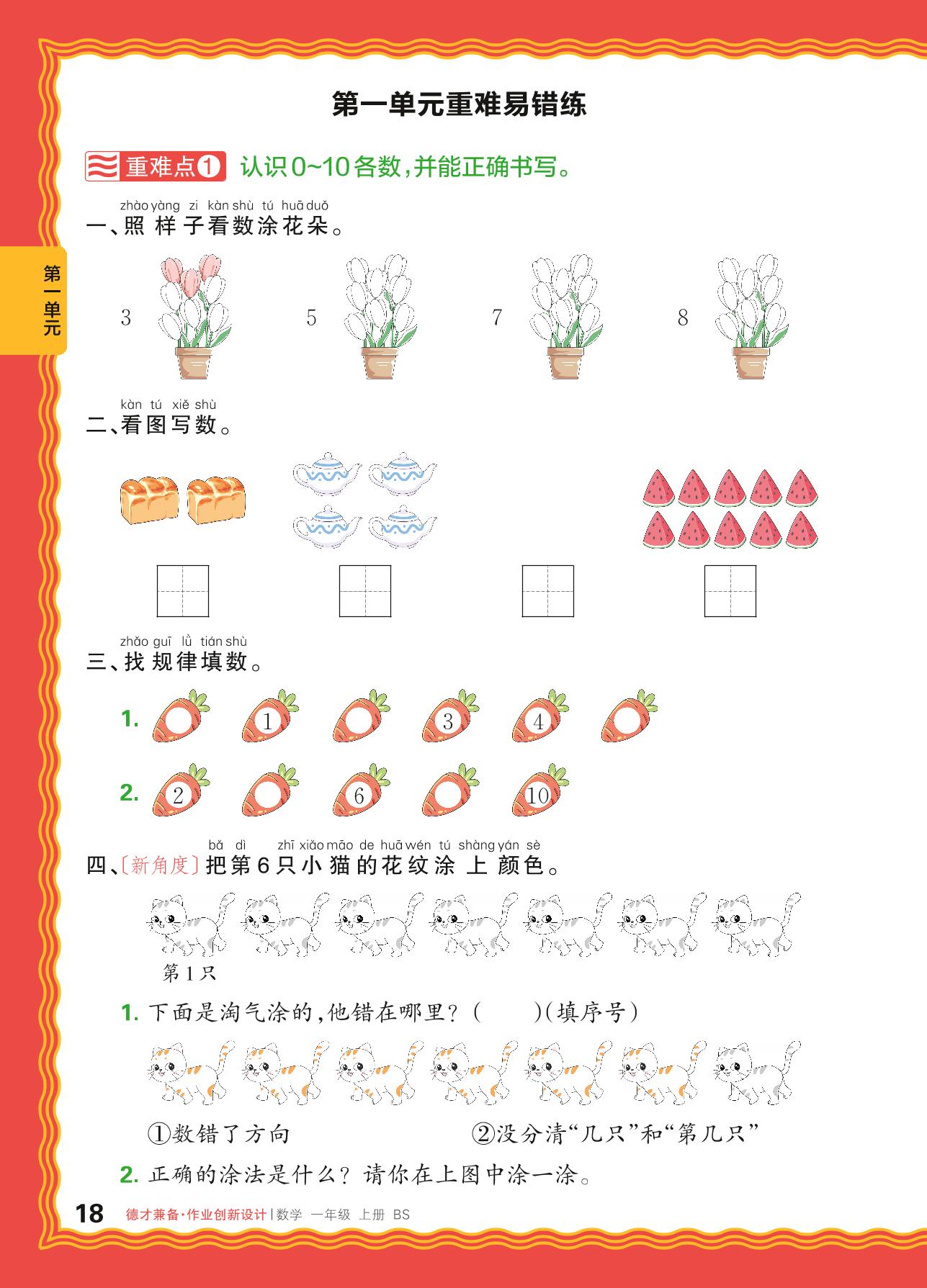 2024秋上册一年级数学北师版 第一单元重难易错练