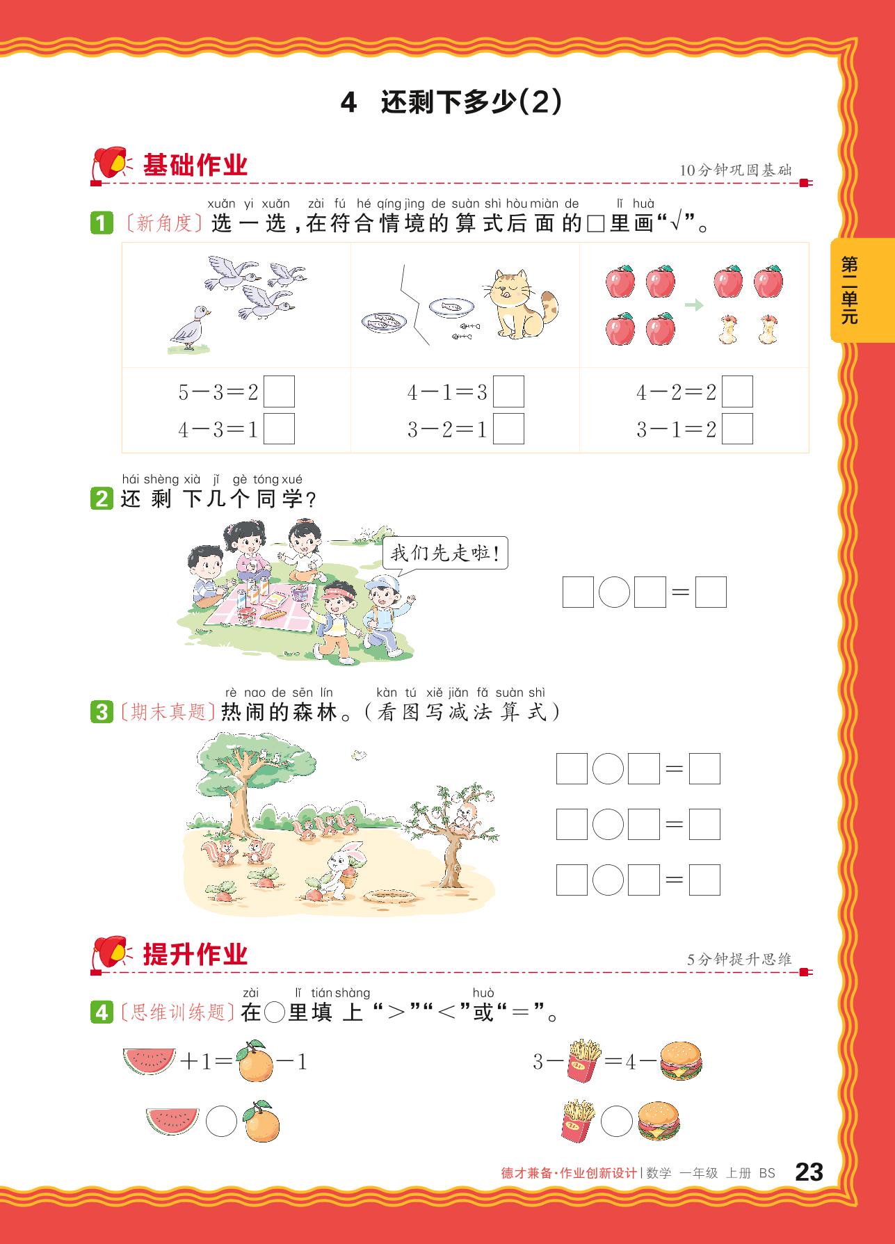 2024秋上册一年级数学北师版 第二单元 5以内数加与减——4. 还剩下多少(2)_R240819135722011