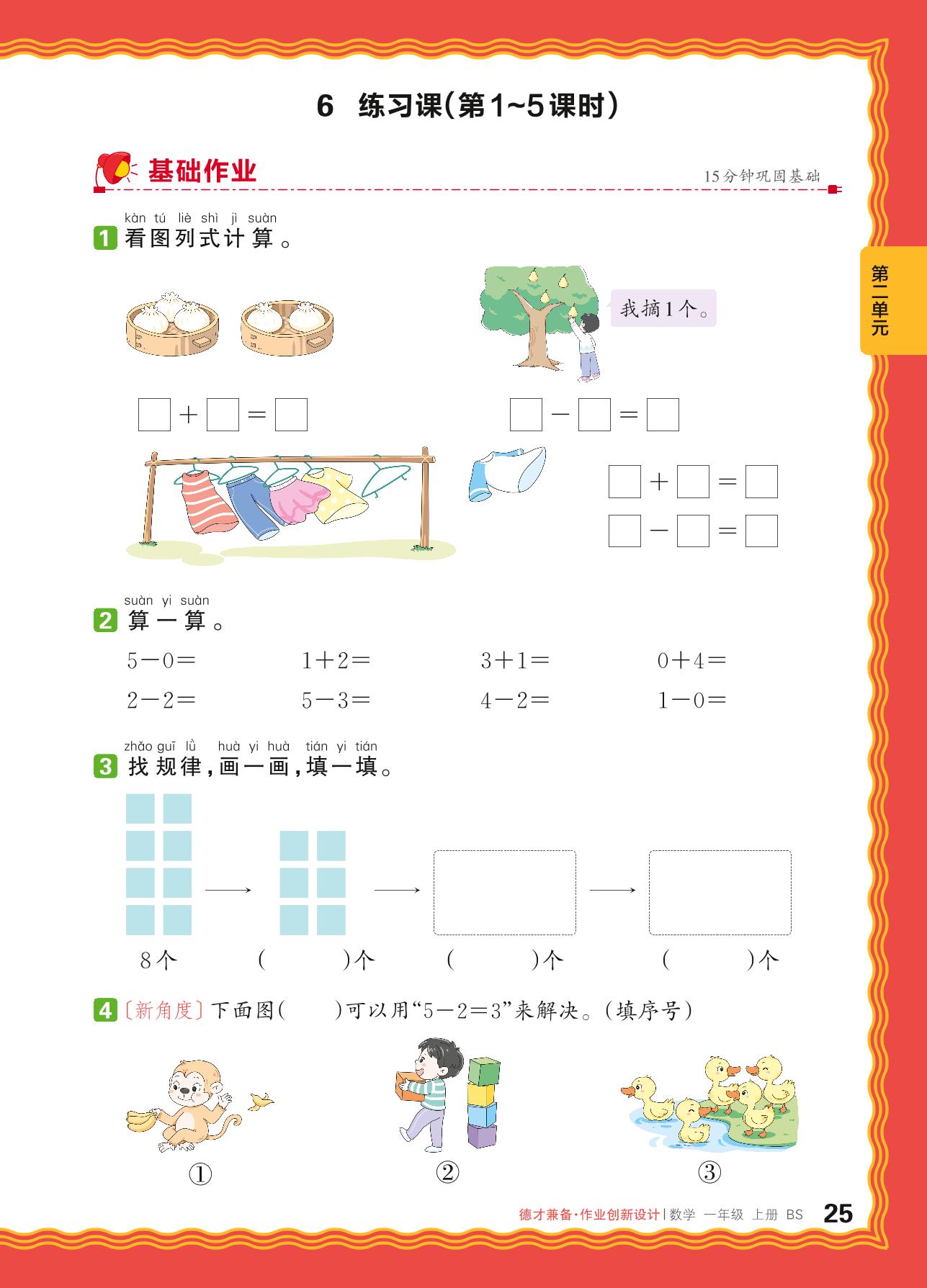 2024秋上册一年级数学北师版 第二单元 5以内数加与减练习课