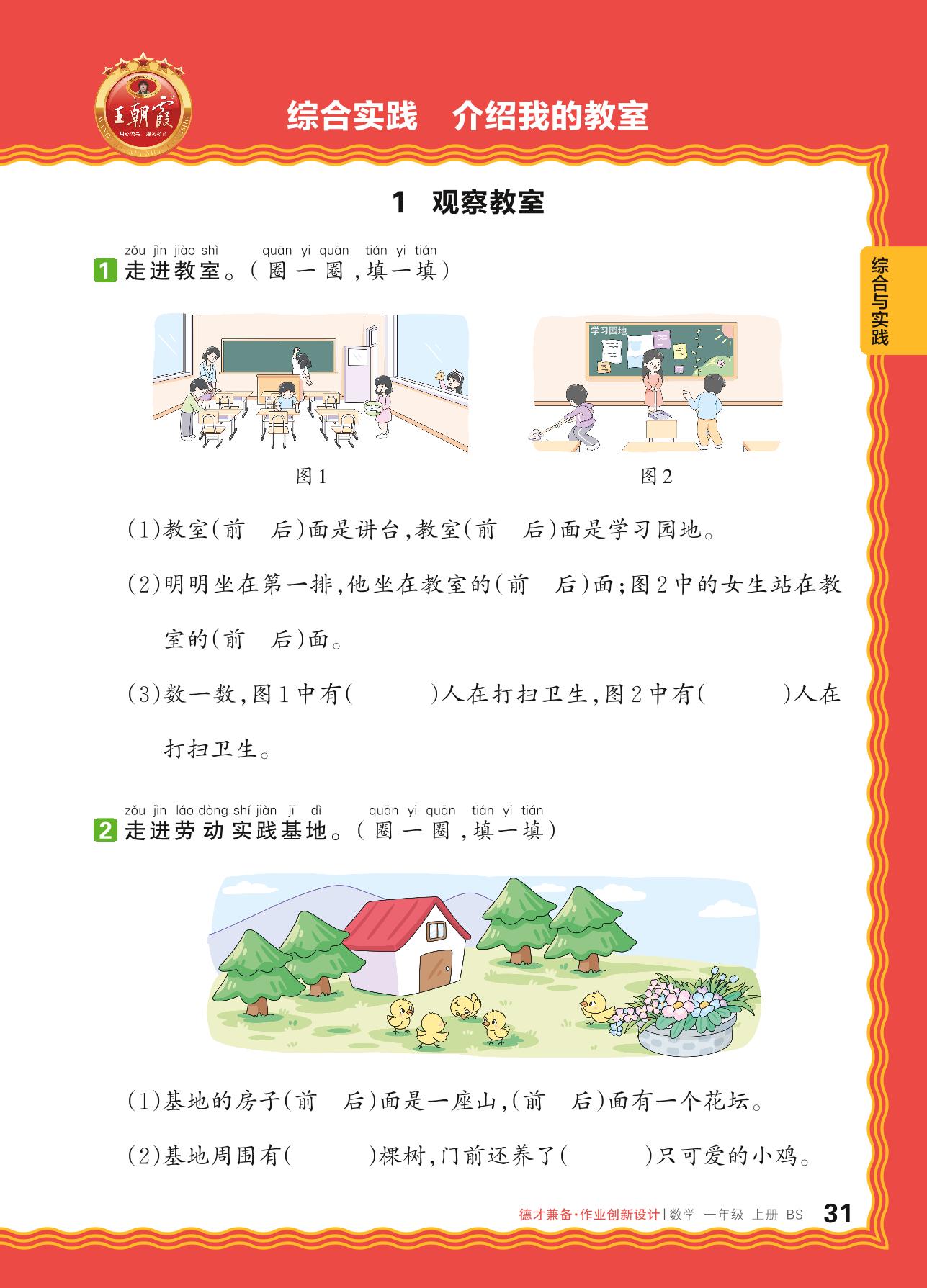 2024秋上册一年级数学北师版 综合实践 介绍我的教室——1. 观察教室_R240819135724010