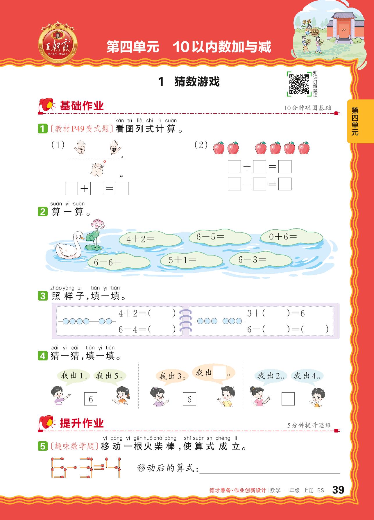 2024秋上册一年级数学北师版 第四单元 10以内数加与减——1. 猜数游戏_R240819135727699