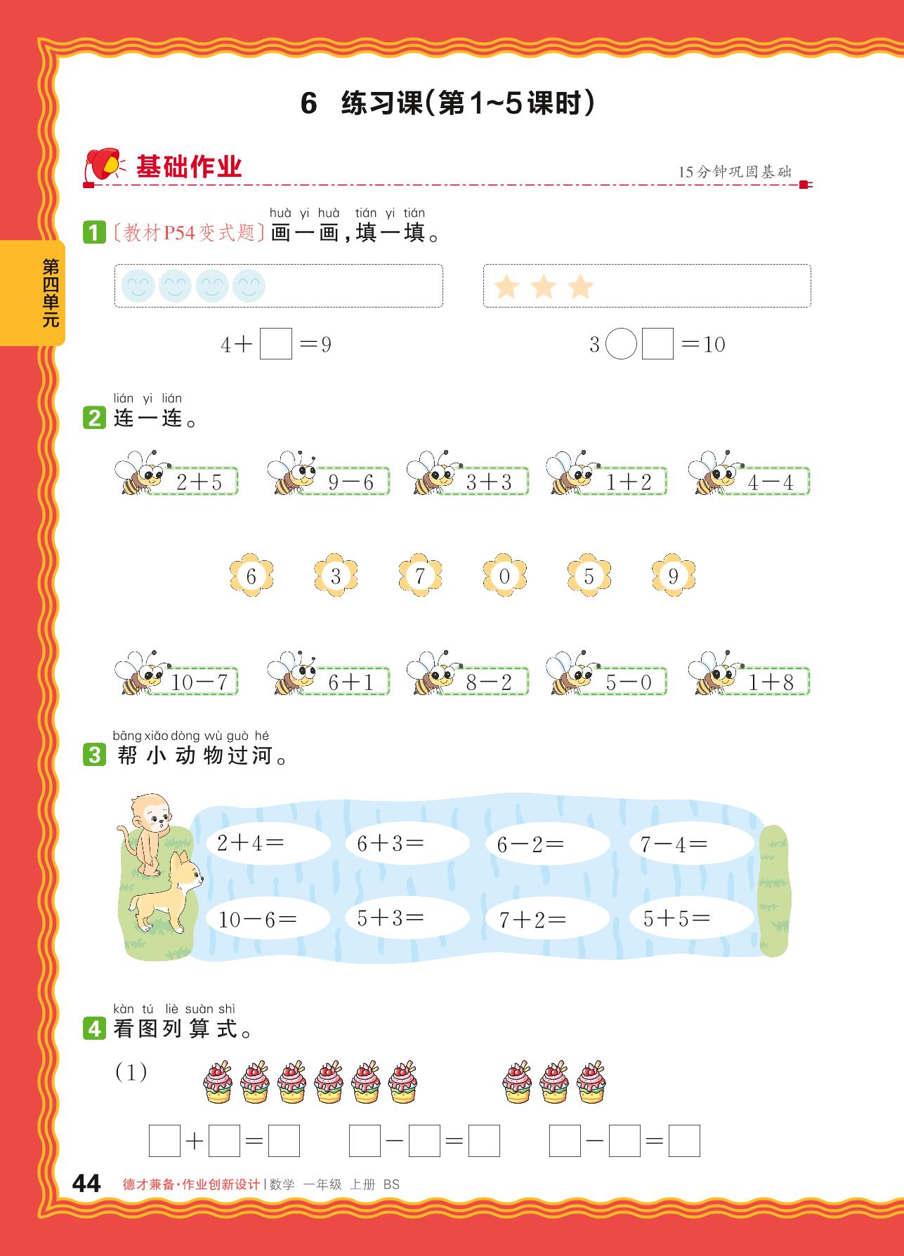 2024秋上册一年级数学北师版 第四单元 10以内数加与减——6. 猜数游戏、背土豆、课间、小鸡吃食练习课