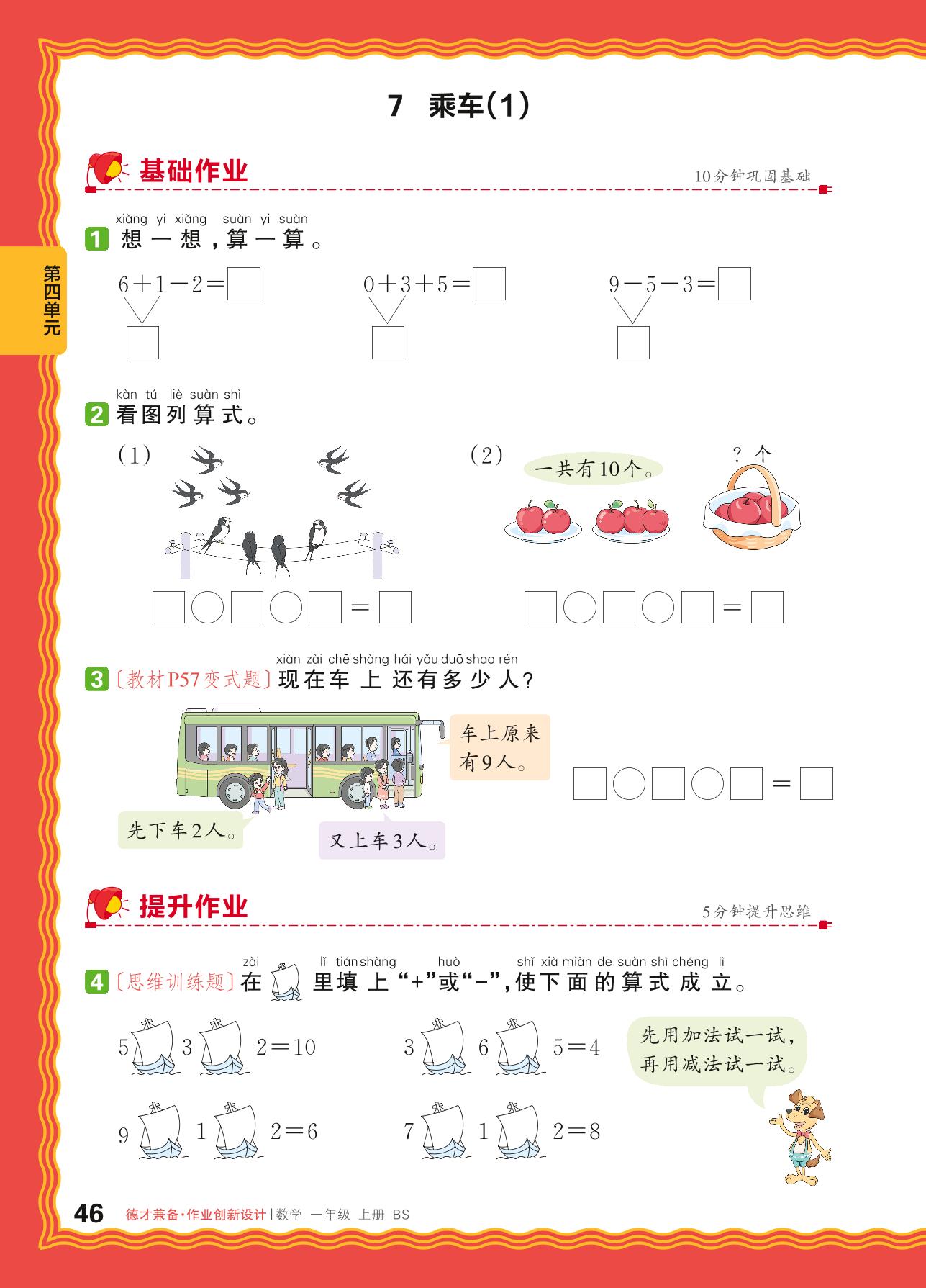 2024秋上册一年级数学北师版 第四单元 10以内数加与减——7. 乘车(1)