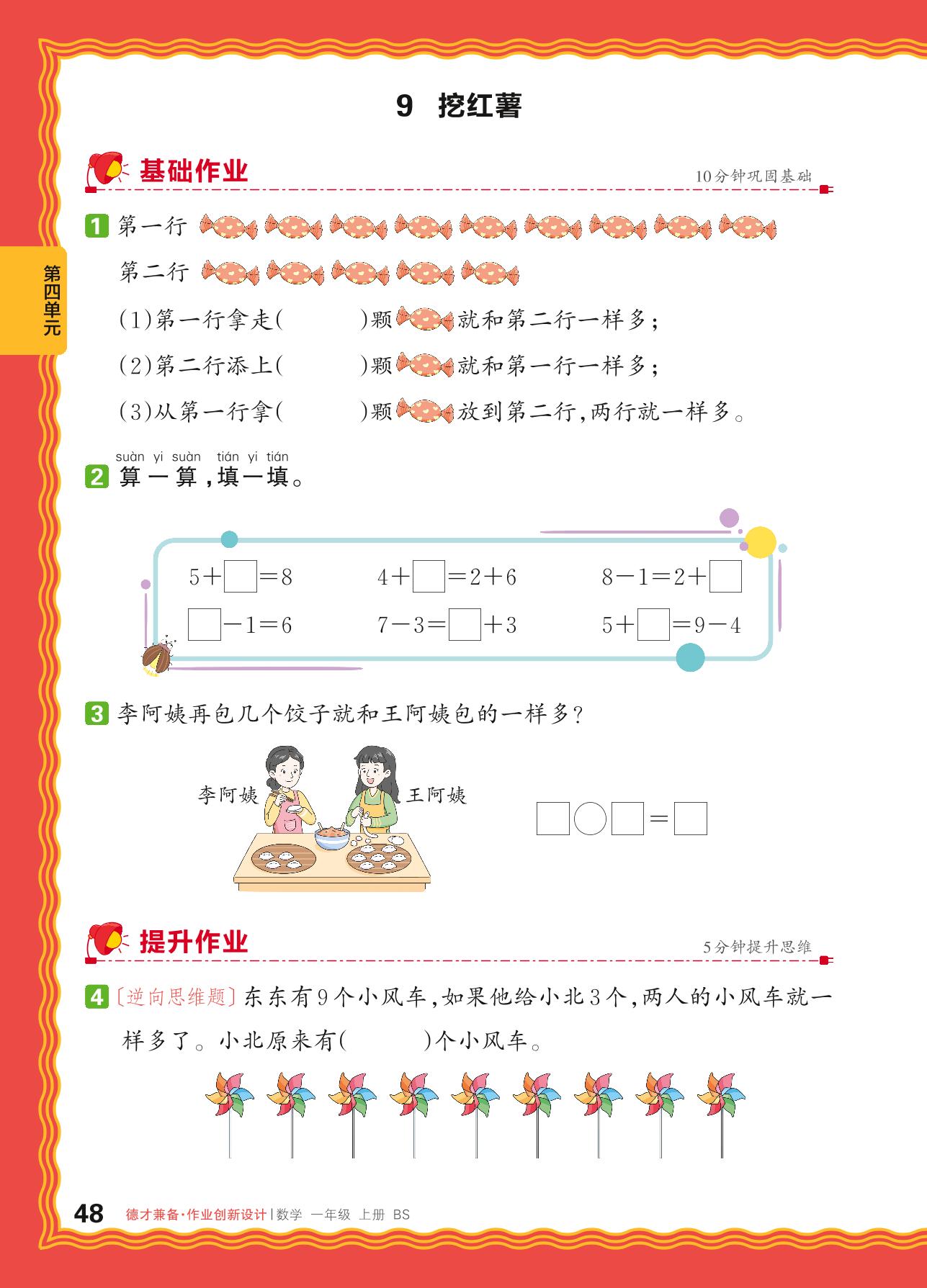 2024秋上册一年级数学北师版 第四单元 10以内数加与减——9. 挖红薯