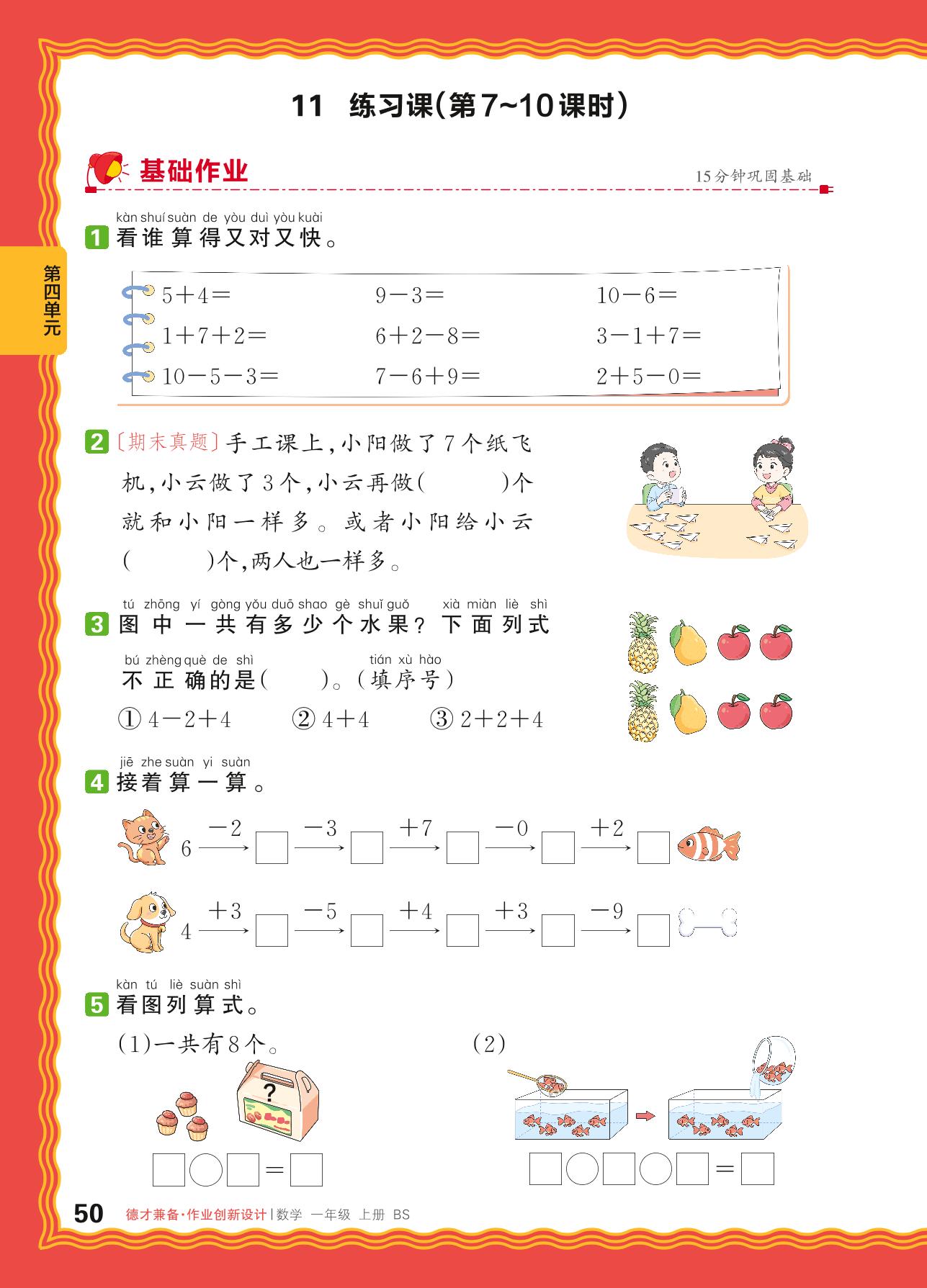 2024秋上册一年级数学北师版 第四单元 10以内数加与减——11. 乘车、挖红薯、可爱的企鹅练习课