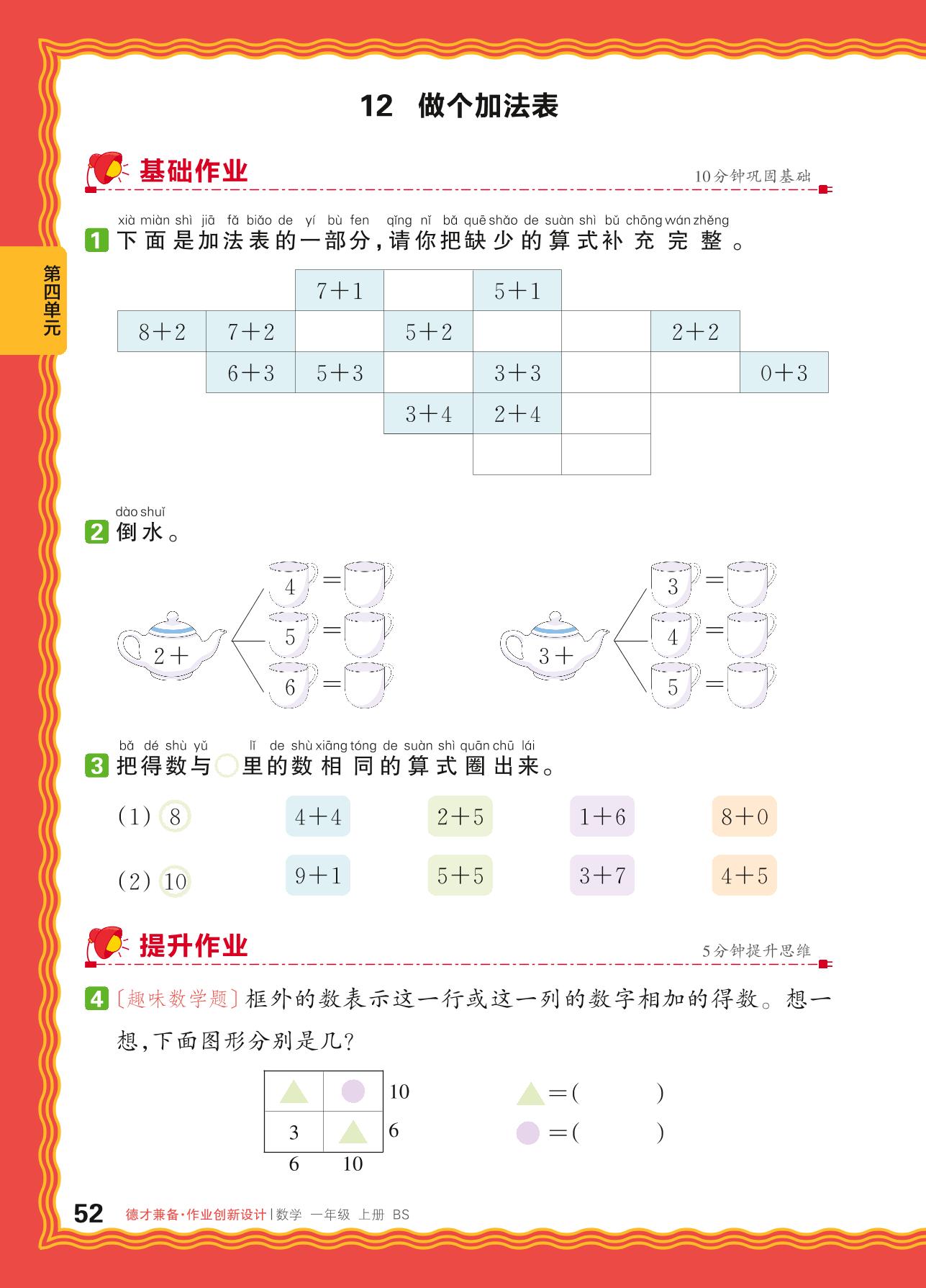 2024秋上册一年级数学北师版 第四单元 10以内数加与减——12. 做个加法表