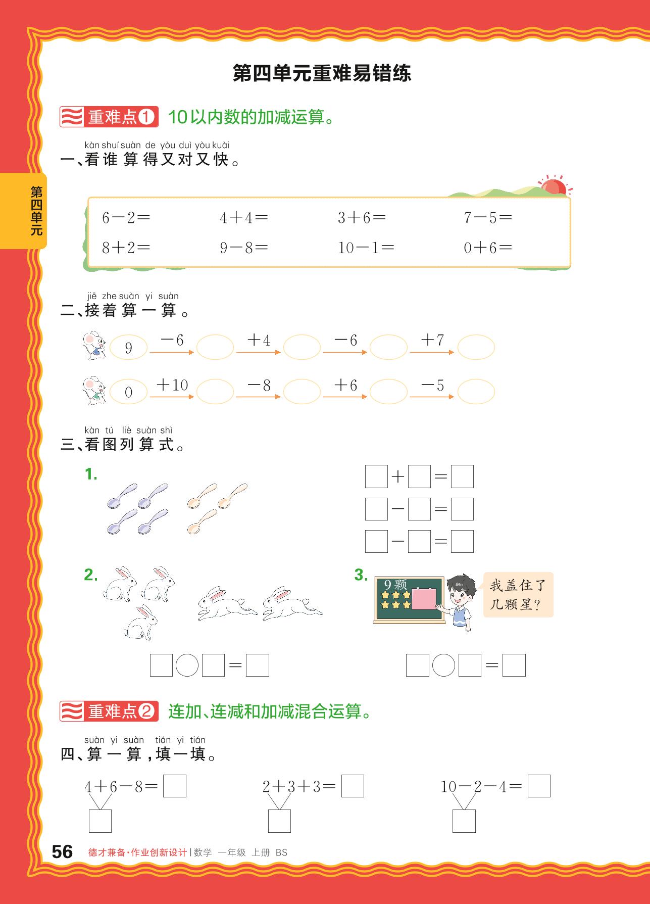 2024秋上册一年级数学北师版 第四单元重难易错练