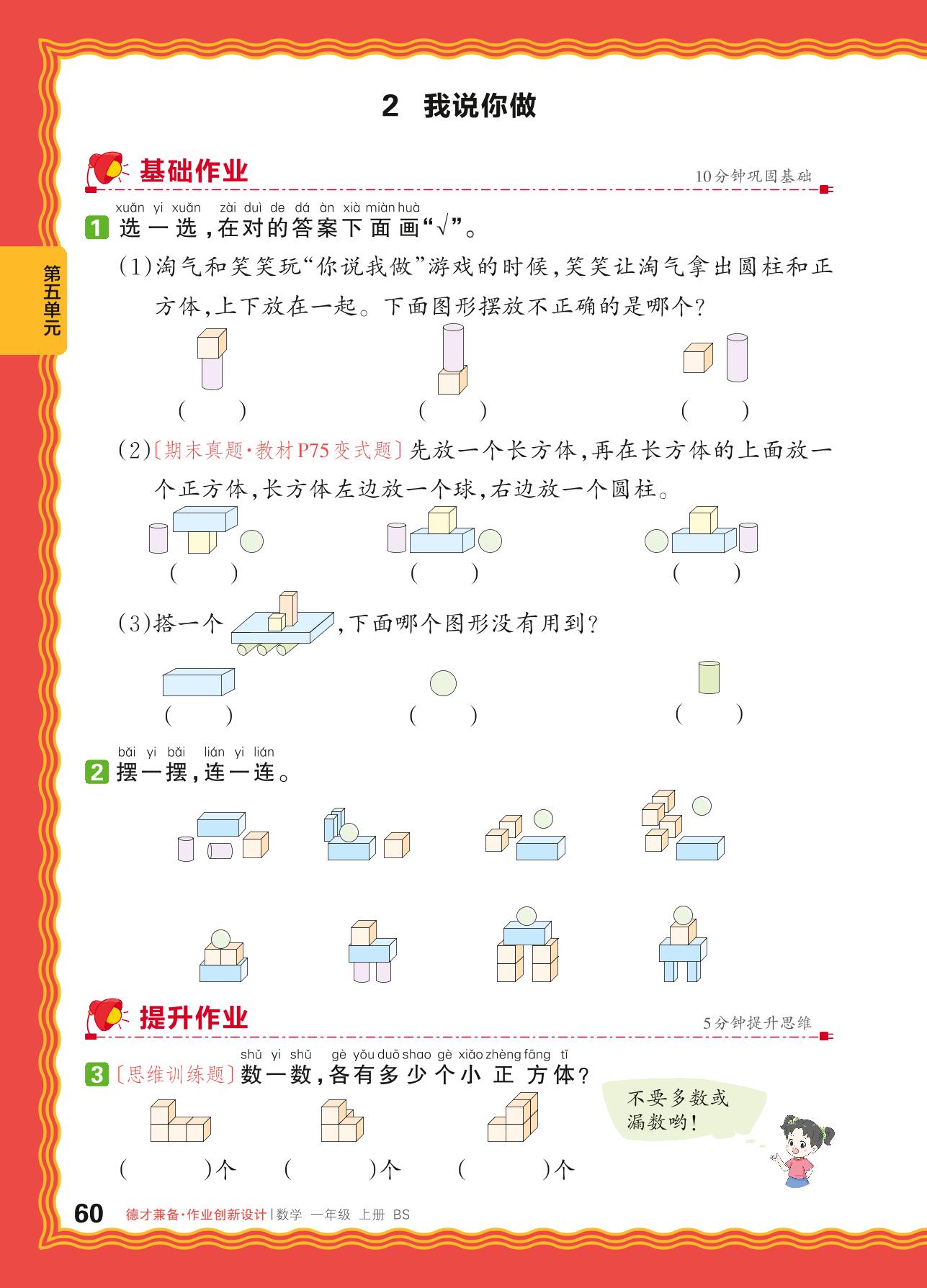 2024秋上册一年级数学北师版 第五单元 有趣的立体图形——2. 我说你做_R240819135734456