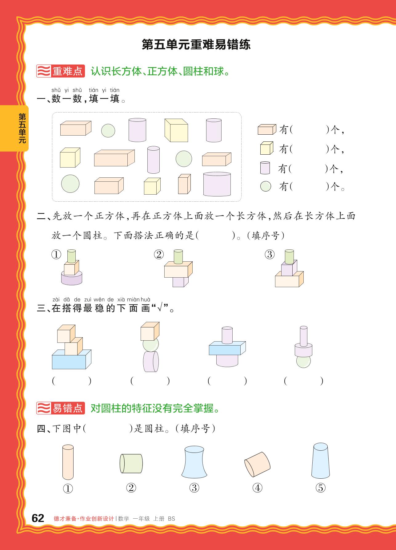 2024秋上册一年级数学北师版 第五单元重难易错练