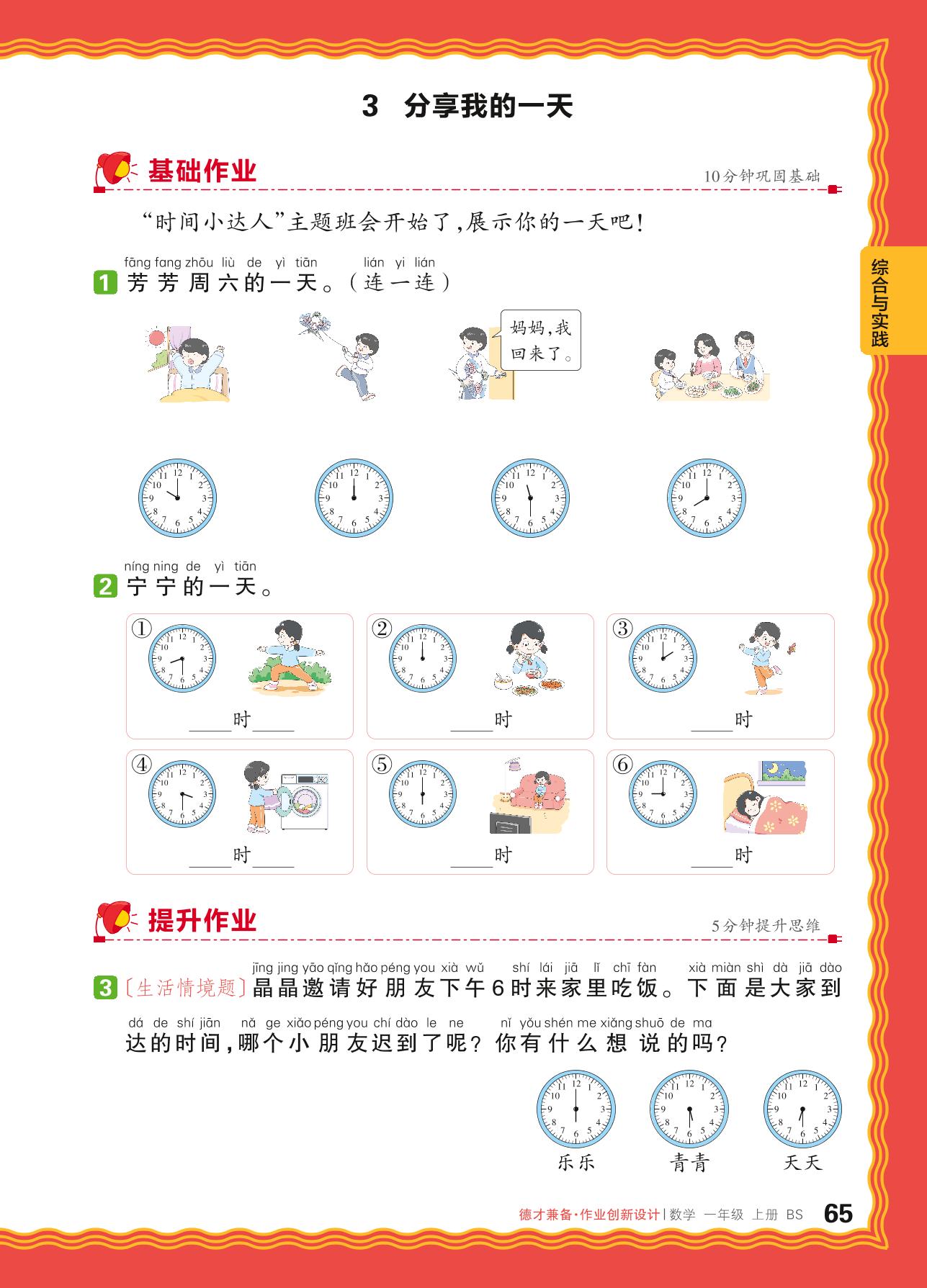 2024秋上册一年级数学北师版 综合实践 记录我的一天——3. 分享我的一天_R240819135736347
