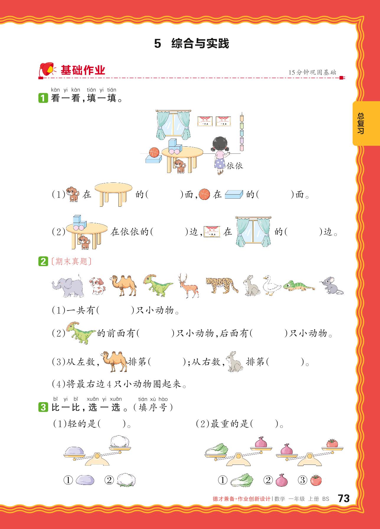 2024秋上册一年级数学北师版 总复习——5. 综合与实践_R240819135738394
