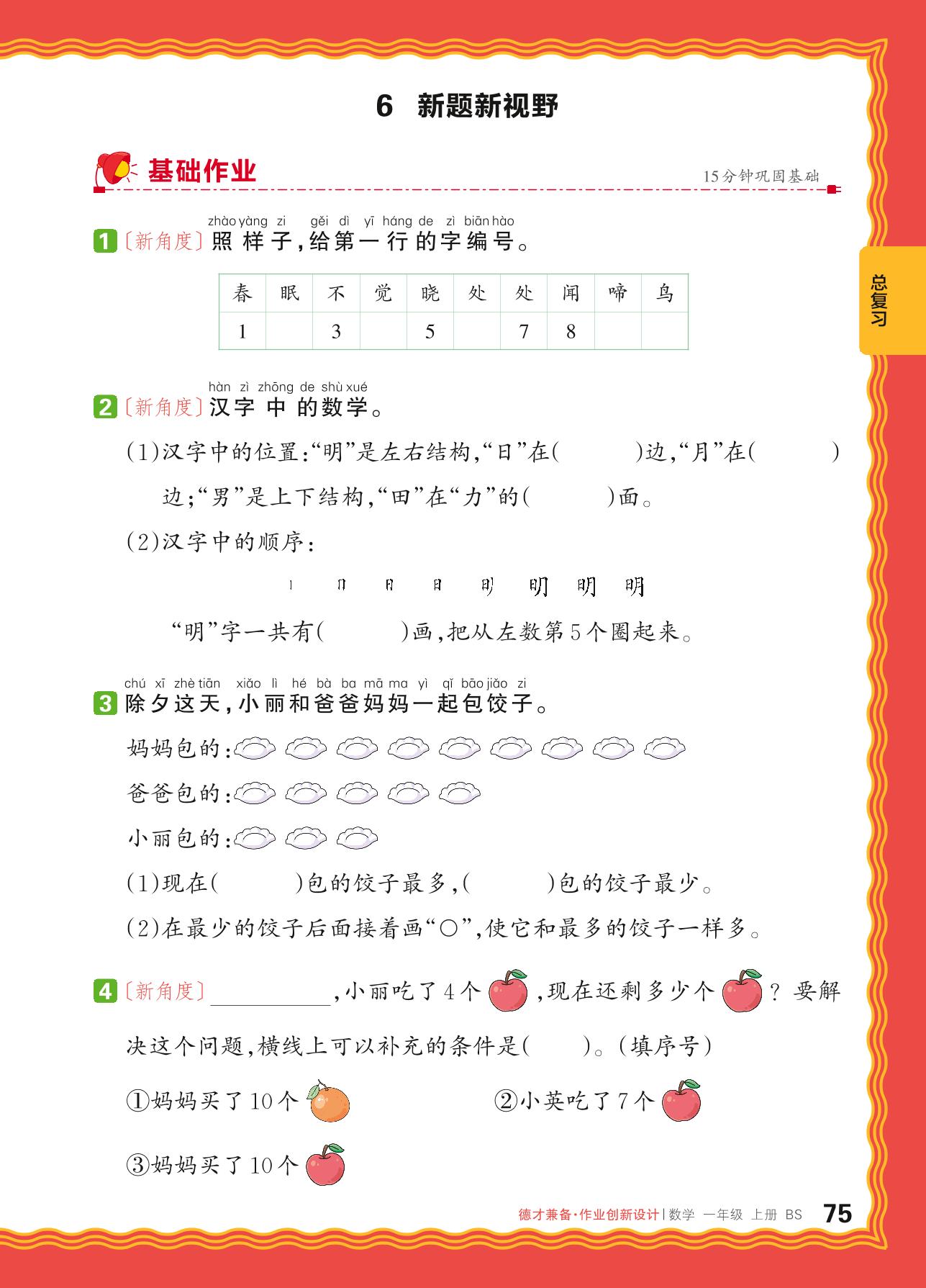 2024秋上册一年级数学北师版 总复习——6. 新题新视野