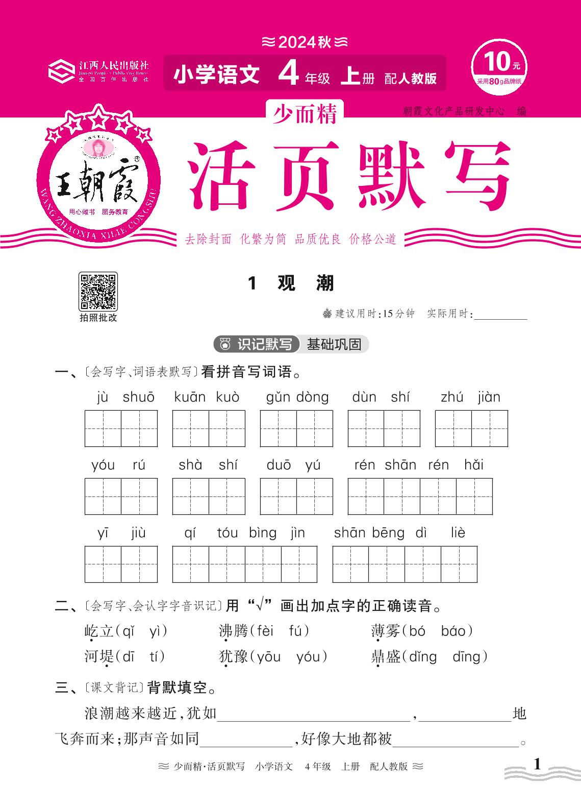 2024秋上册四年级语文人教版 第一单元——1. 观潮