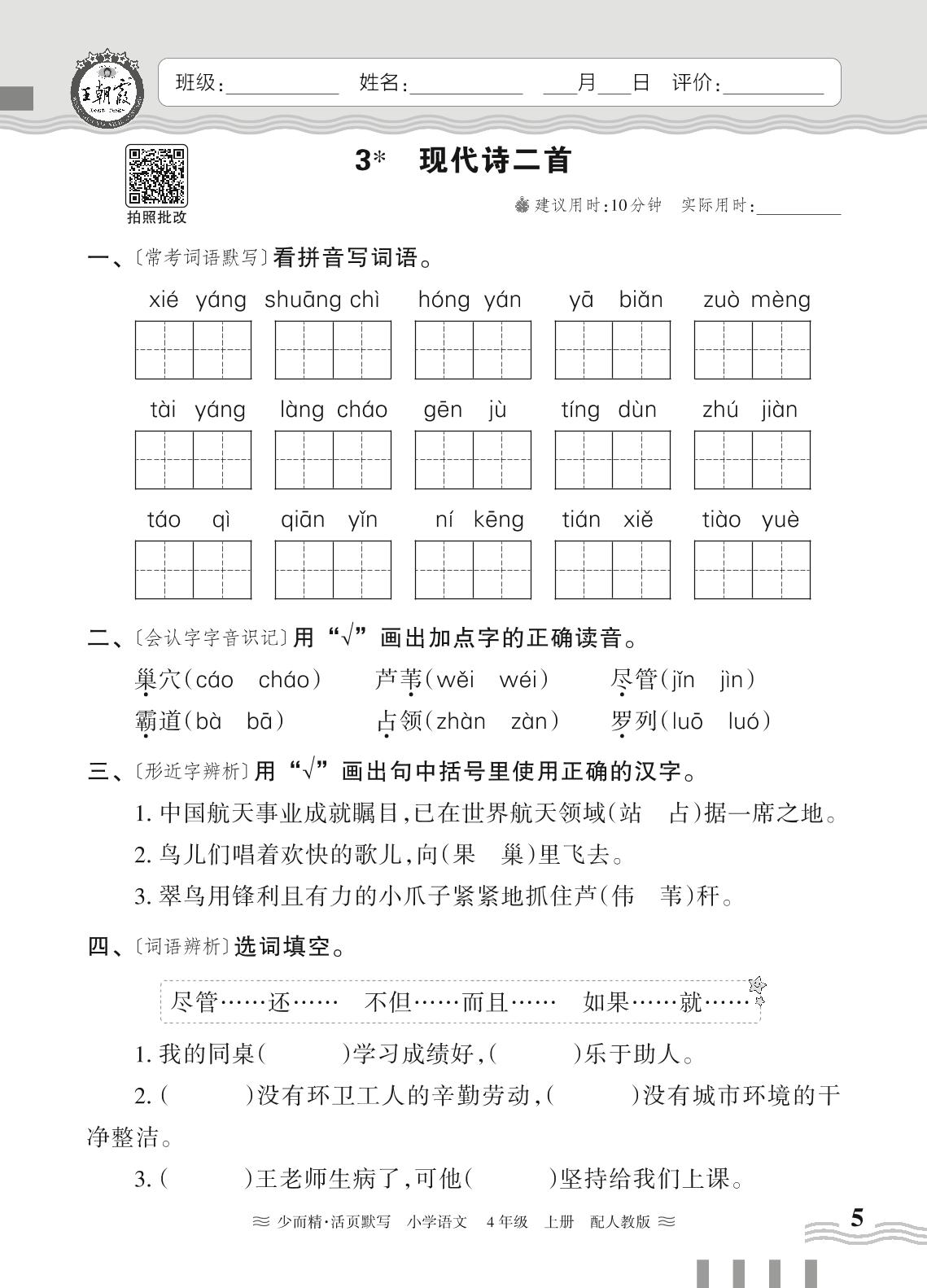 2024秋上册四年级语文人教版 第一单元——3. 现代诗二首