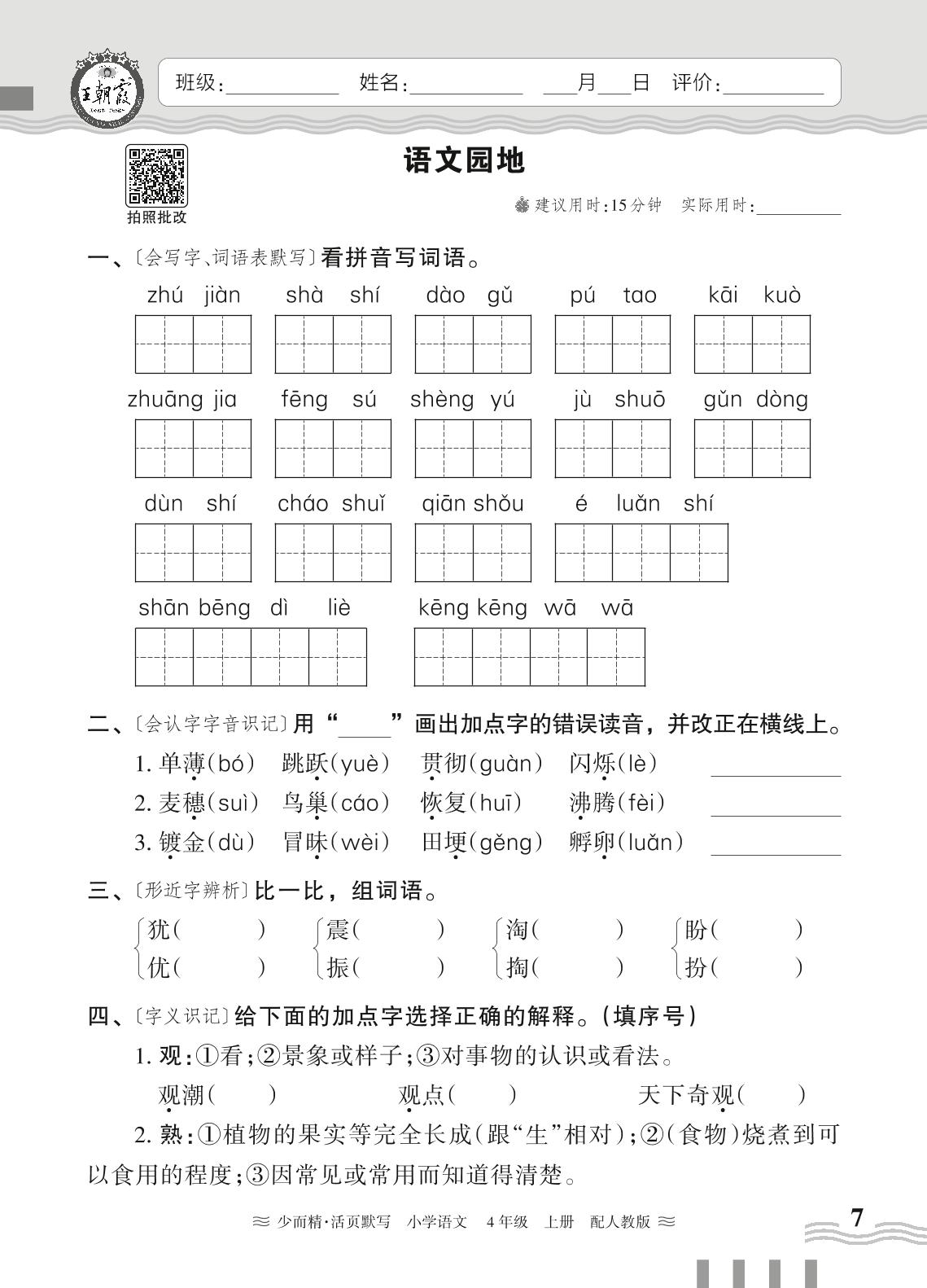 2024秋上册四年级语文人教版 第一单元——语文园地