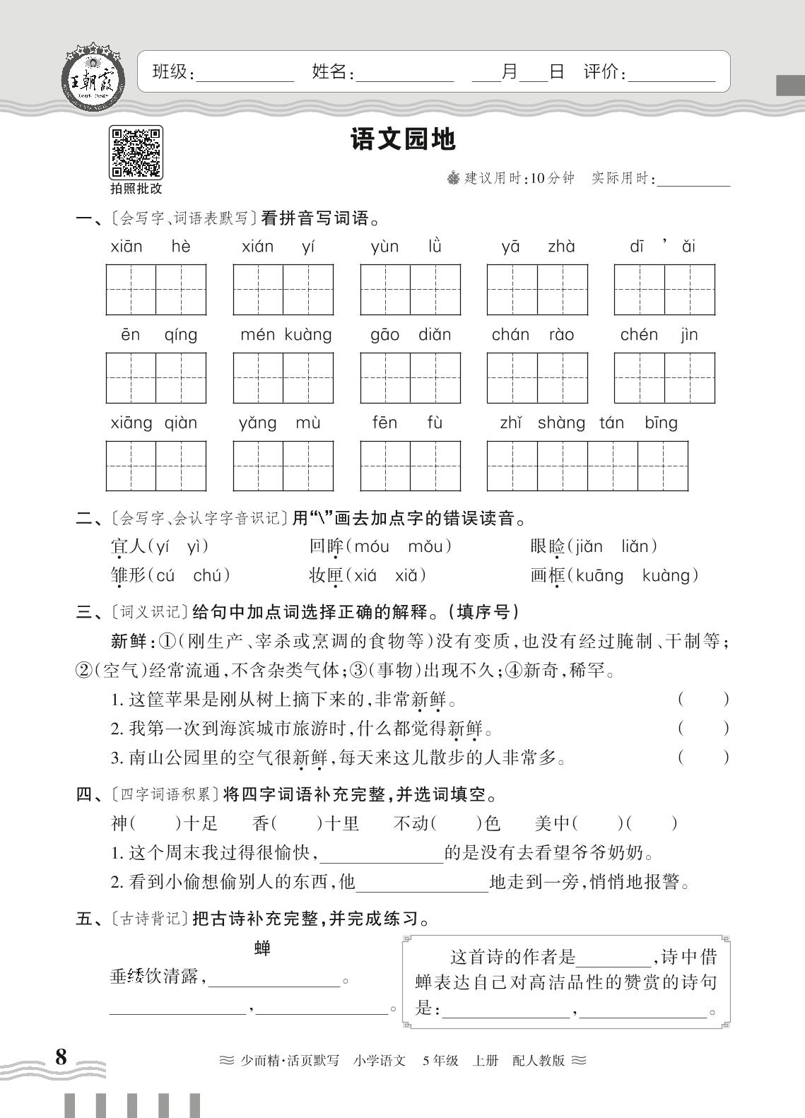 2024秋上册五年级语文人教版 第一单元——语文园地