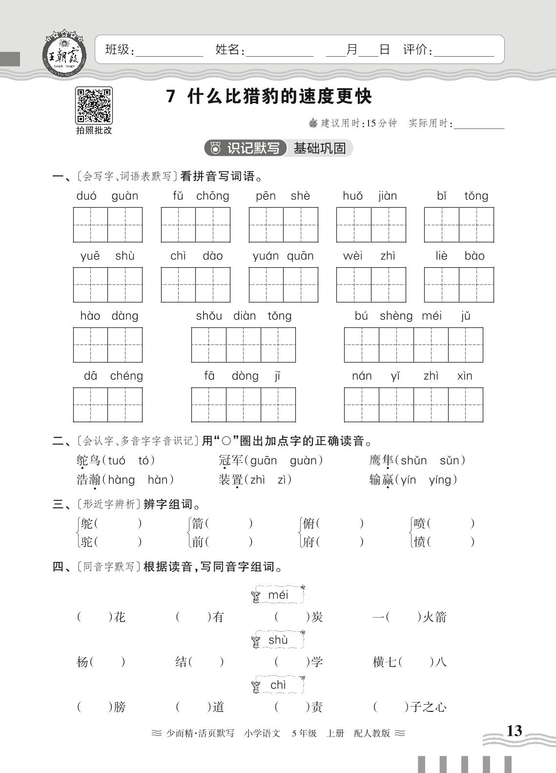 2024秋上册五年级语文人教版 第二单元——7. 什么比猎豹的速度更快