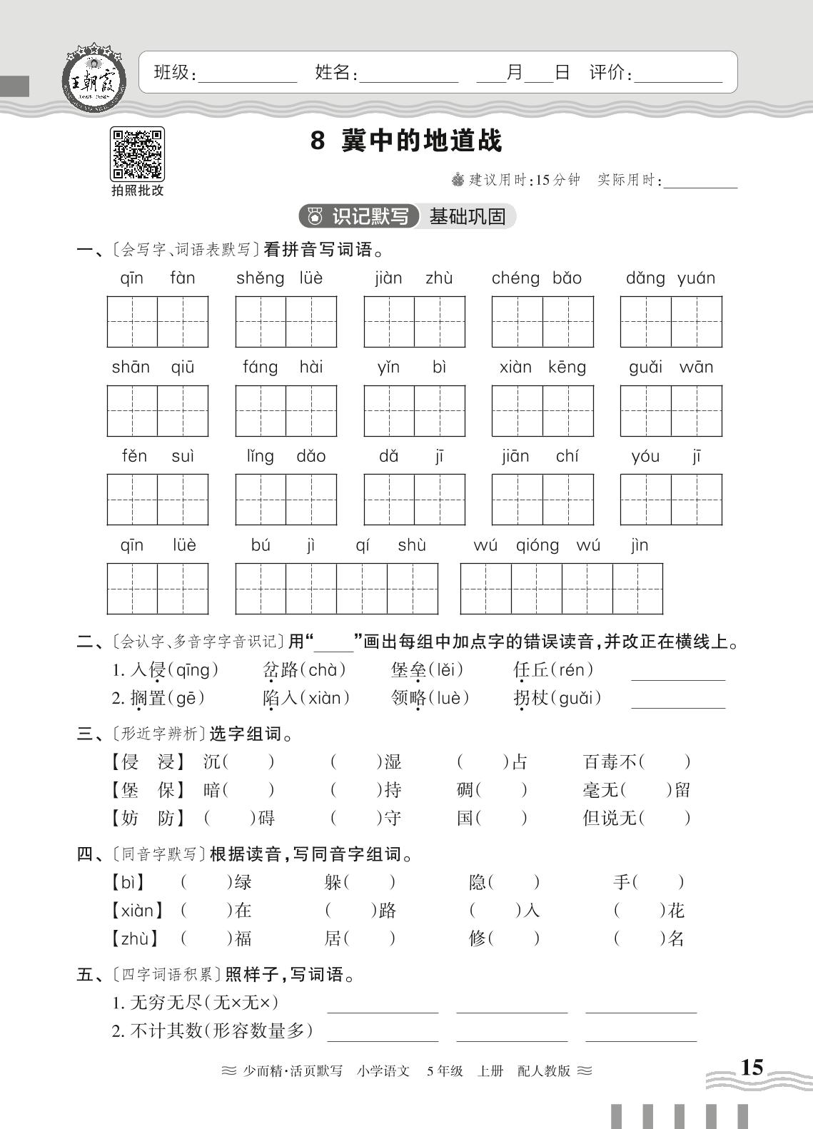 2024秋上册五年级语文人教版 第二单元——8. 冀中的地道战