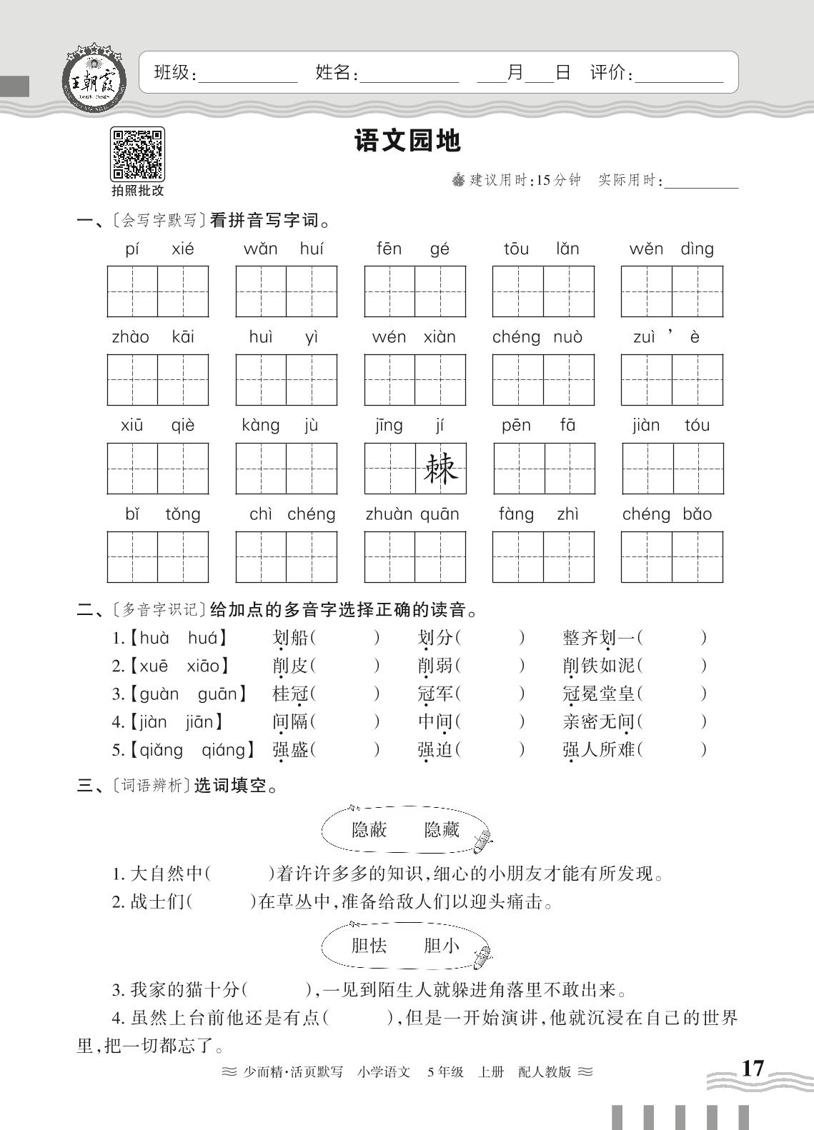 2024秋上册五年级语文人教版 第二单元——语文园地