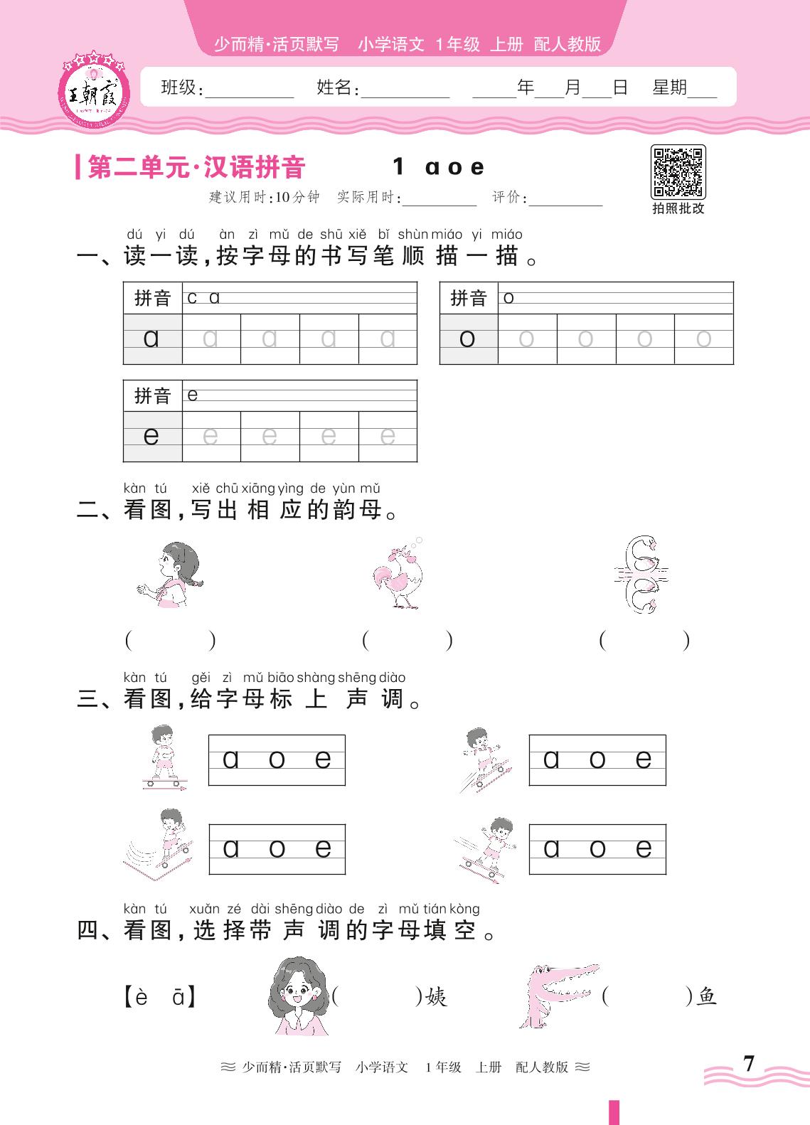2024秋上册一年级语文人教版 第二单元 汉语拼音——1. ɑ o e_R240819140302675
