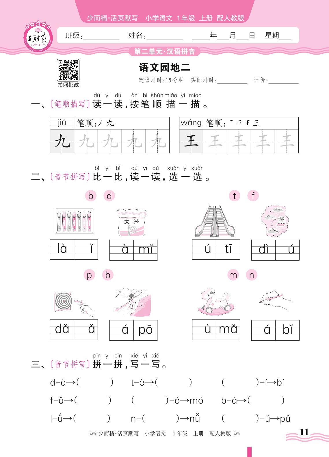 2024秋上册一年级语文人教版 第二单元 汉语拼音——语文园地二_R240819140304477