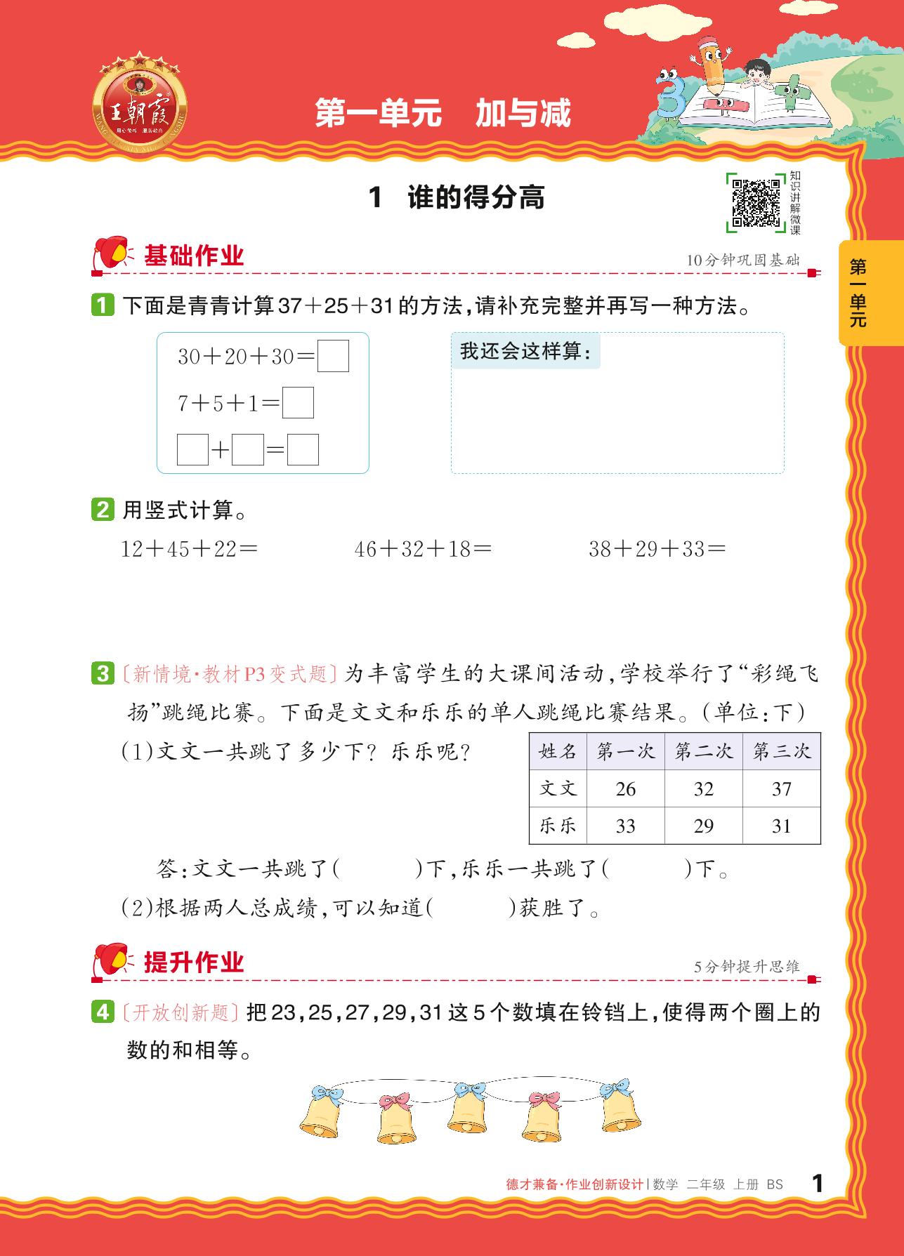 2024秋上册二年级数学北师版 第一单元 加与减——1. 谁的得分高_R240819141839583