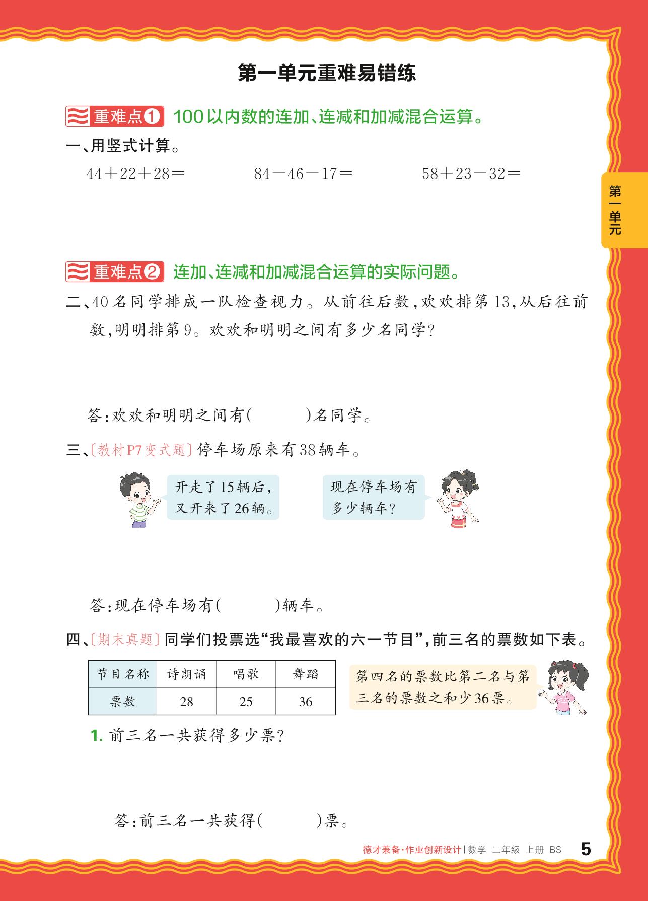 2024秋上册二年级数学北师版 第一单元重难易错练